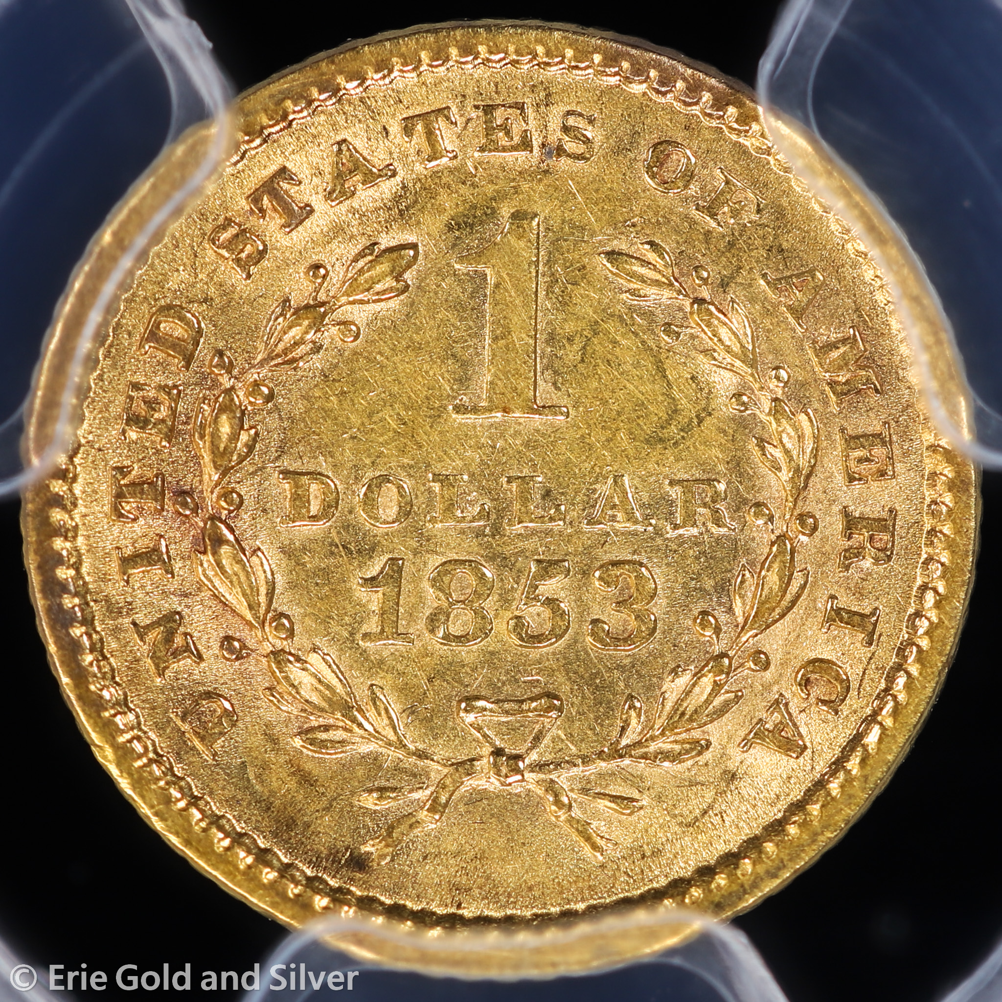 For sale is a 1853 Liberty Head Gold Dollar. Certified / graded by PCGS at Genuine AU Detail. View pictures for details and condition. The item pictured is the exact item you will receive. Feel free to contact us with any questions.