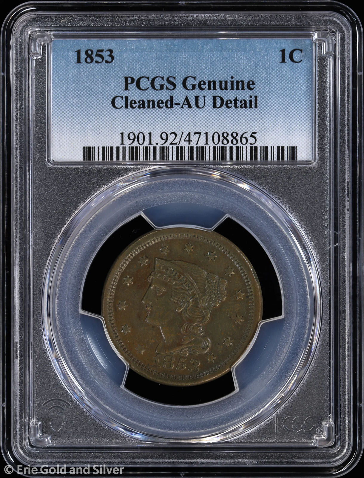 1853 1C Liberty Head Large Cent PCGS Genuine AU Detail