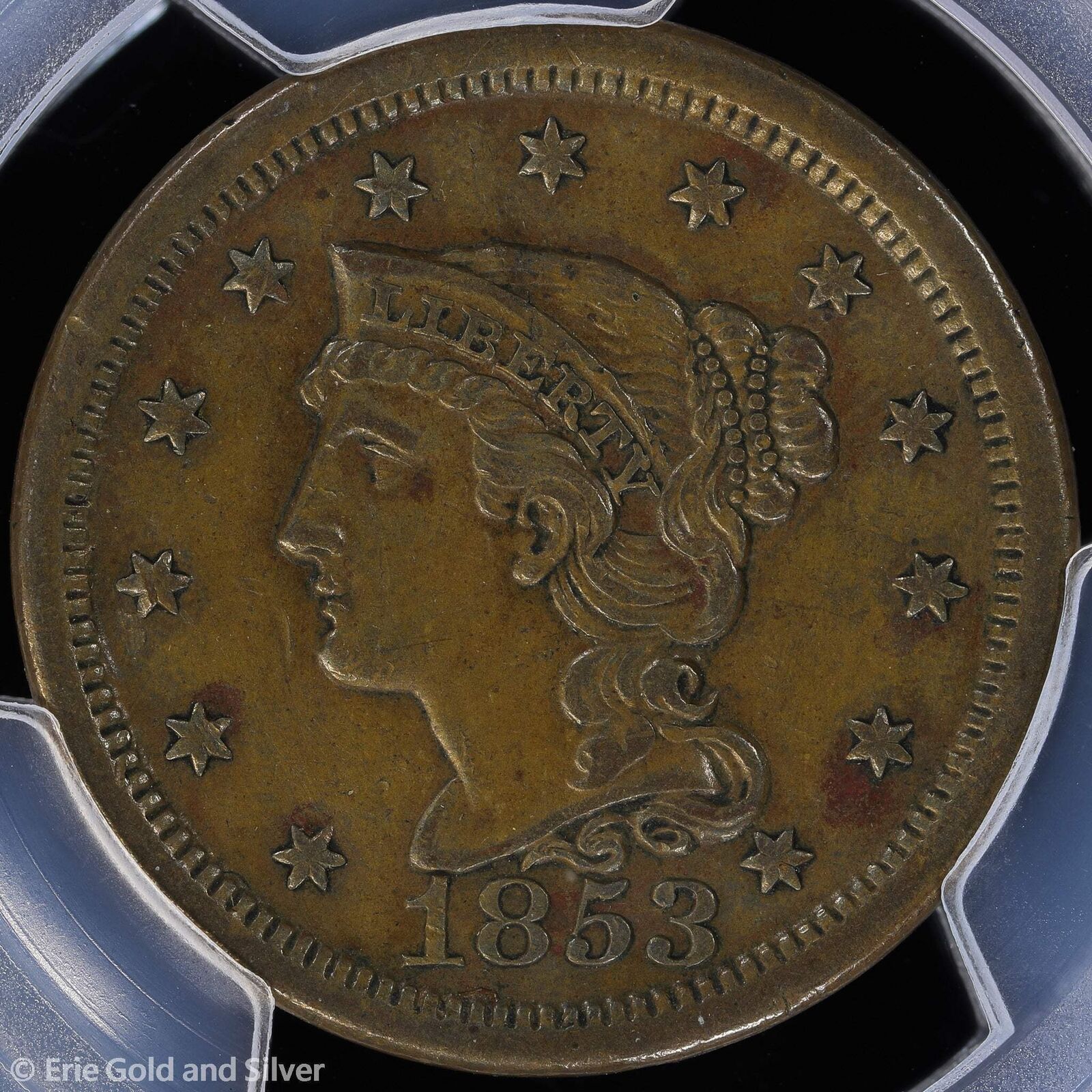 1853 1C Liberty Head Large Cent PCGS Genuine AU Detail