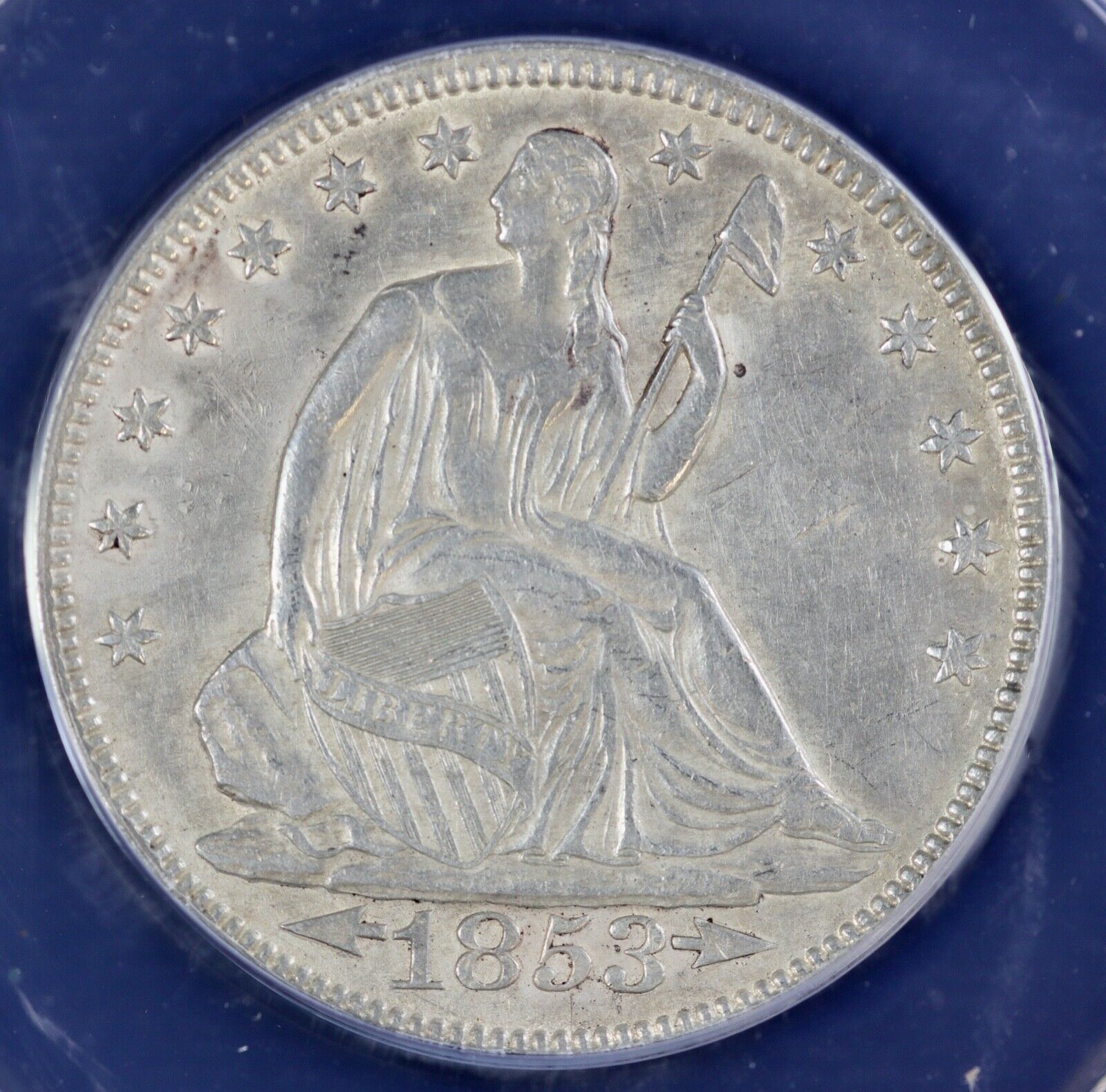 1853 50c Seated Liberty Silver Half Dollar ANACS AU55 Details Arrows DBL DIE REV