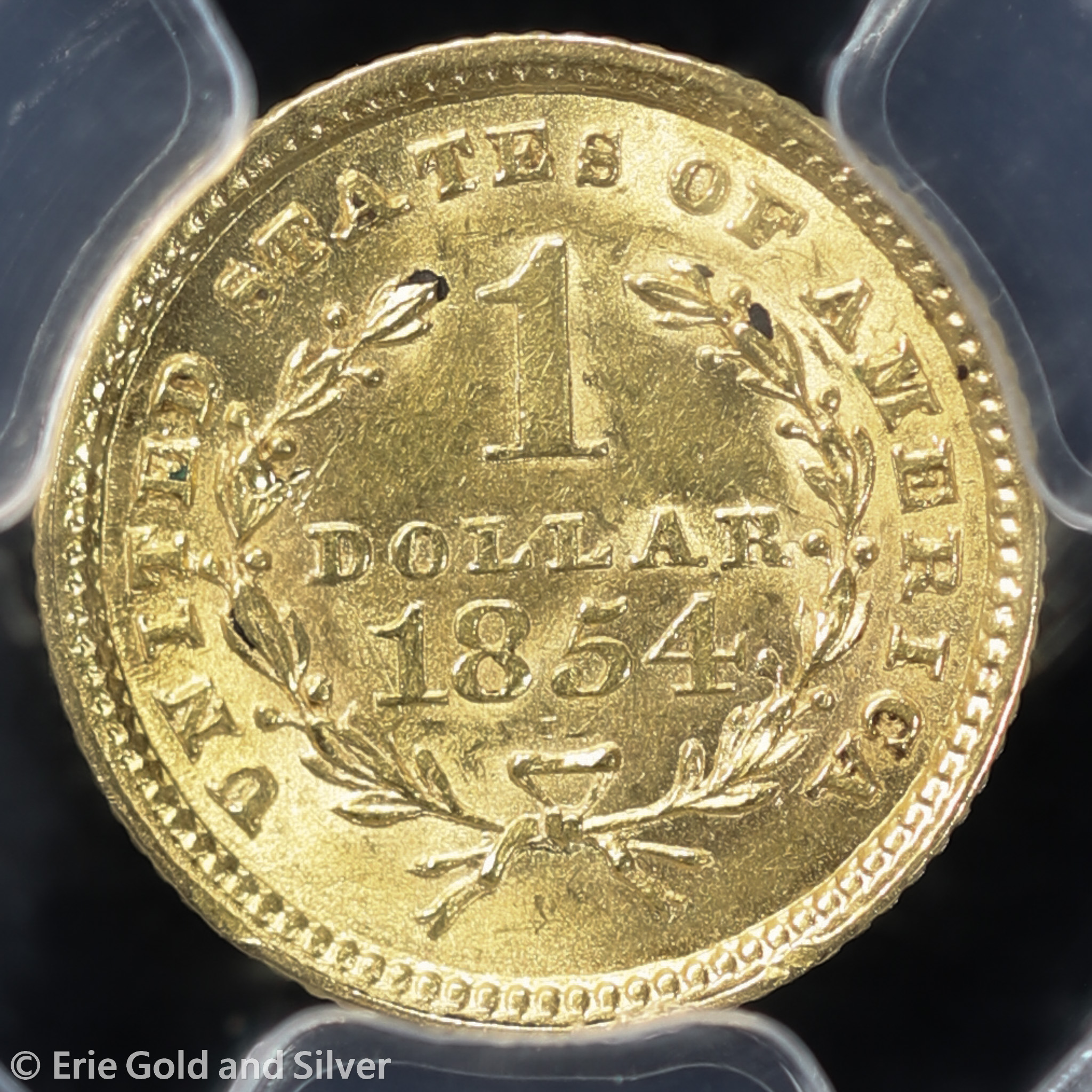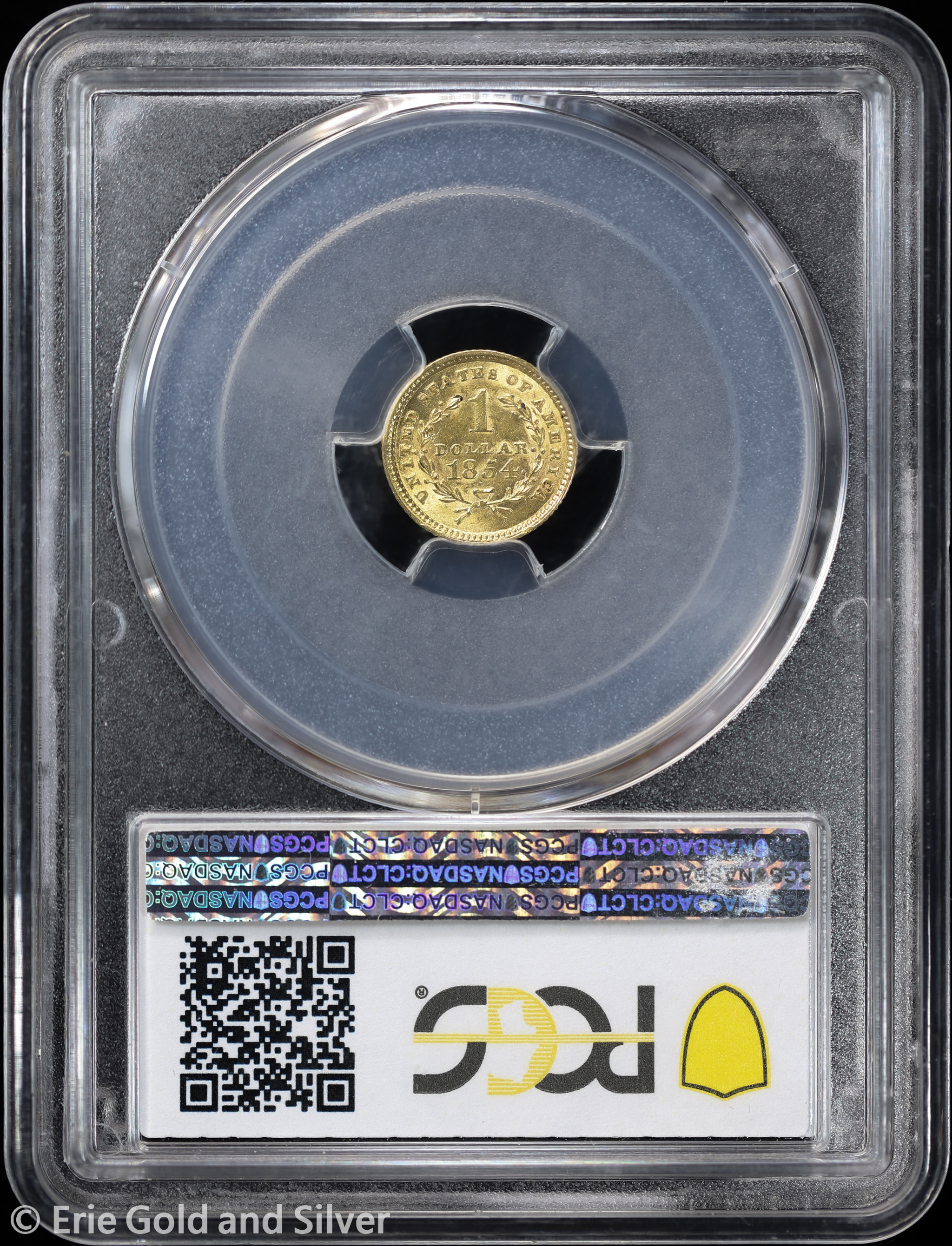 For sale is a 1854 Liberty Head Gold Dollar. Certified / graded by PCGS at MS 62.