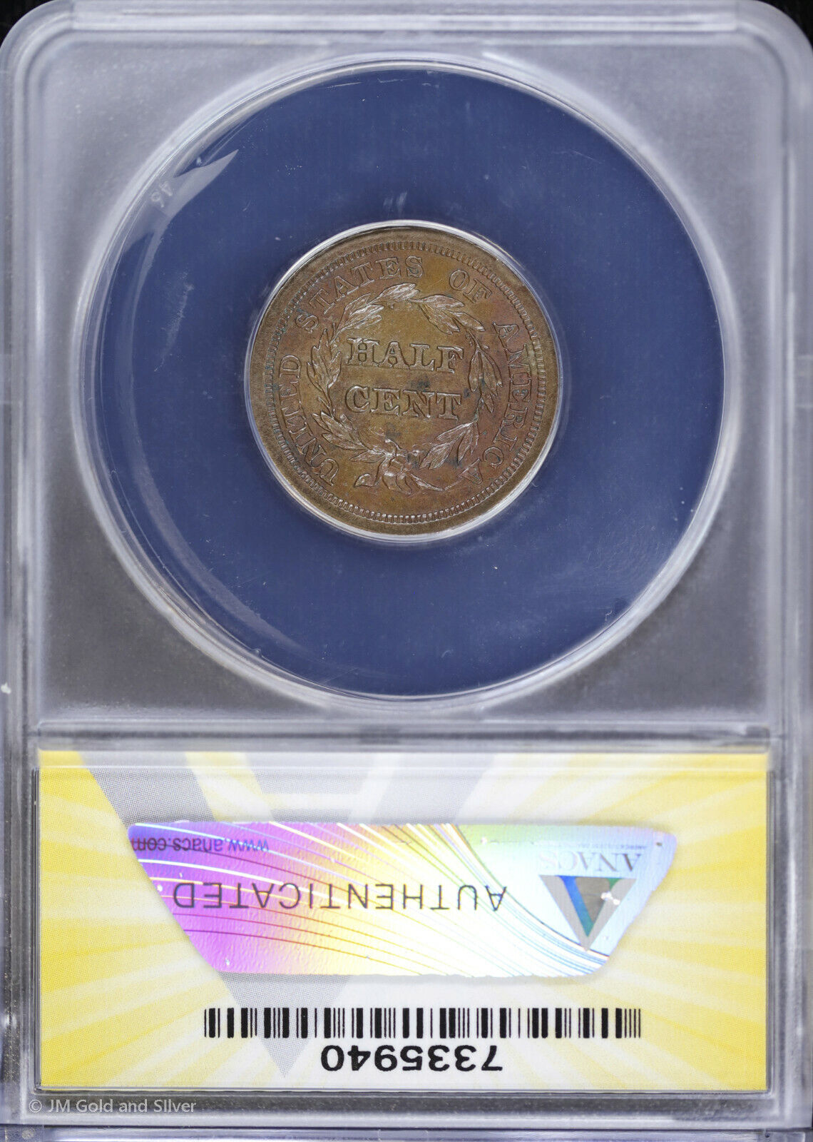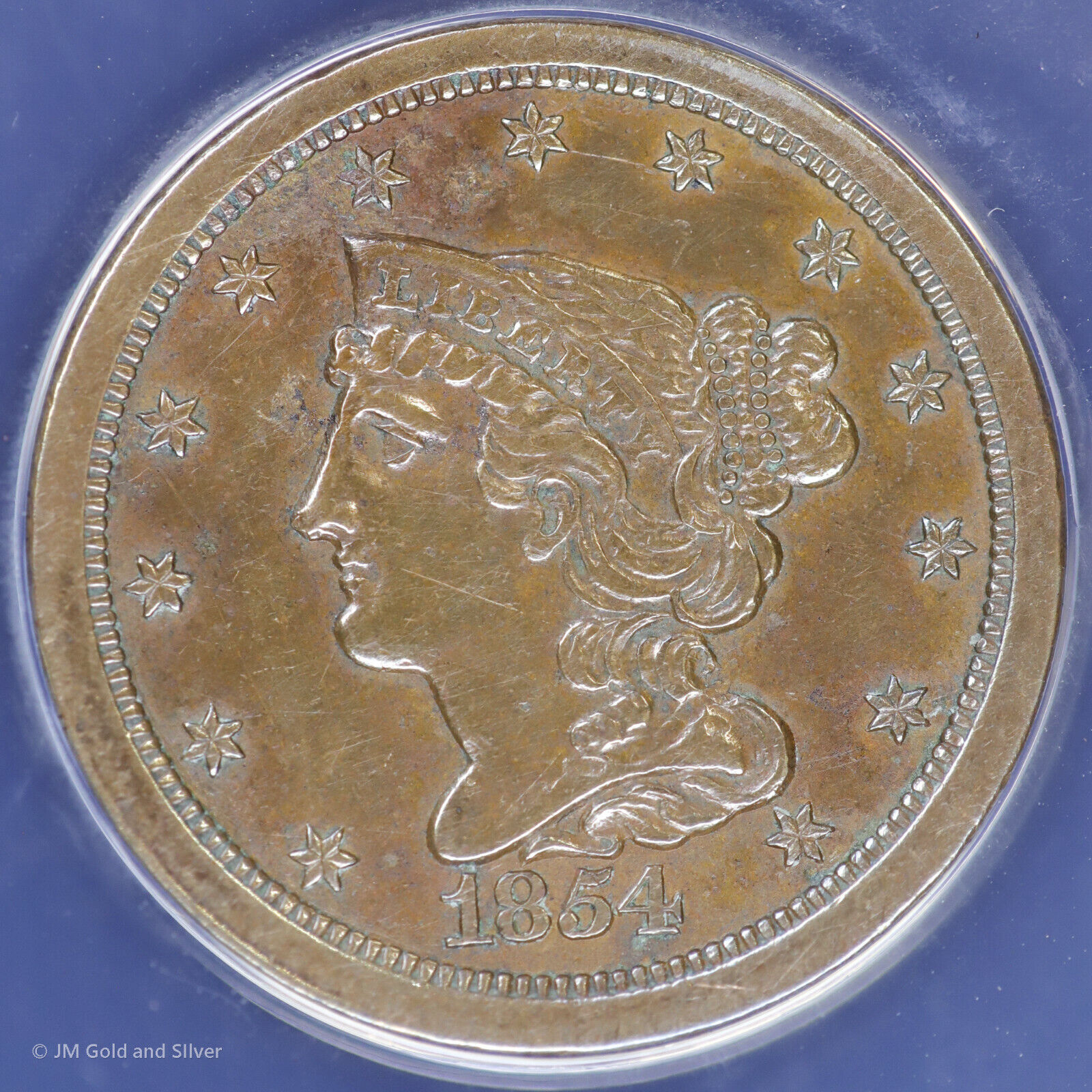 1854 P 1/2c Braided Hair Half Cent ANACS AU 58 Details | C-1