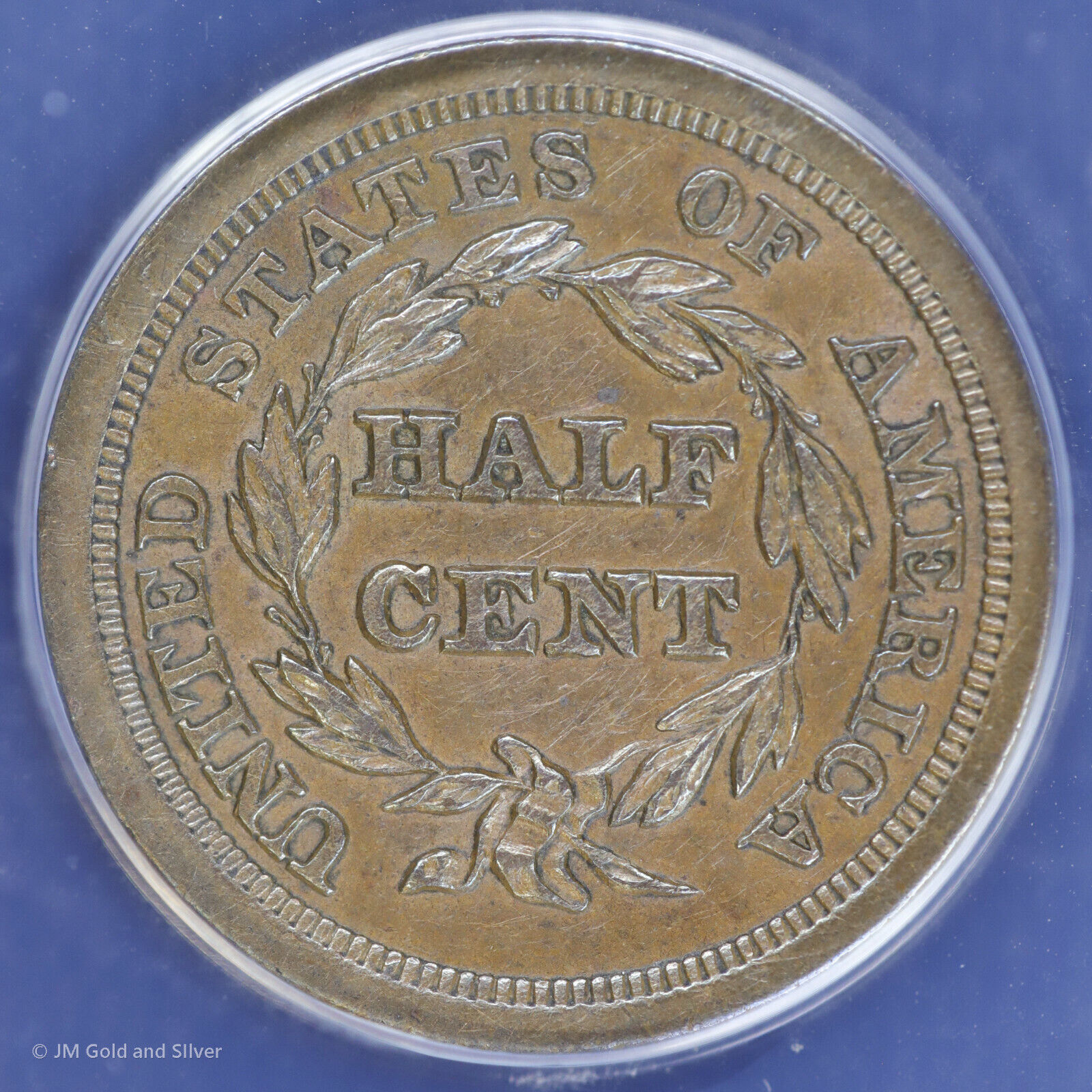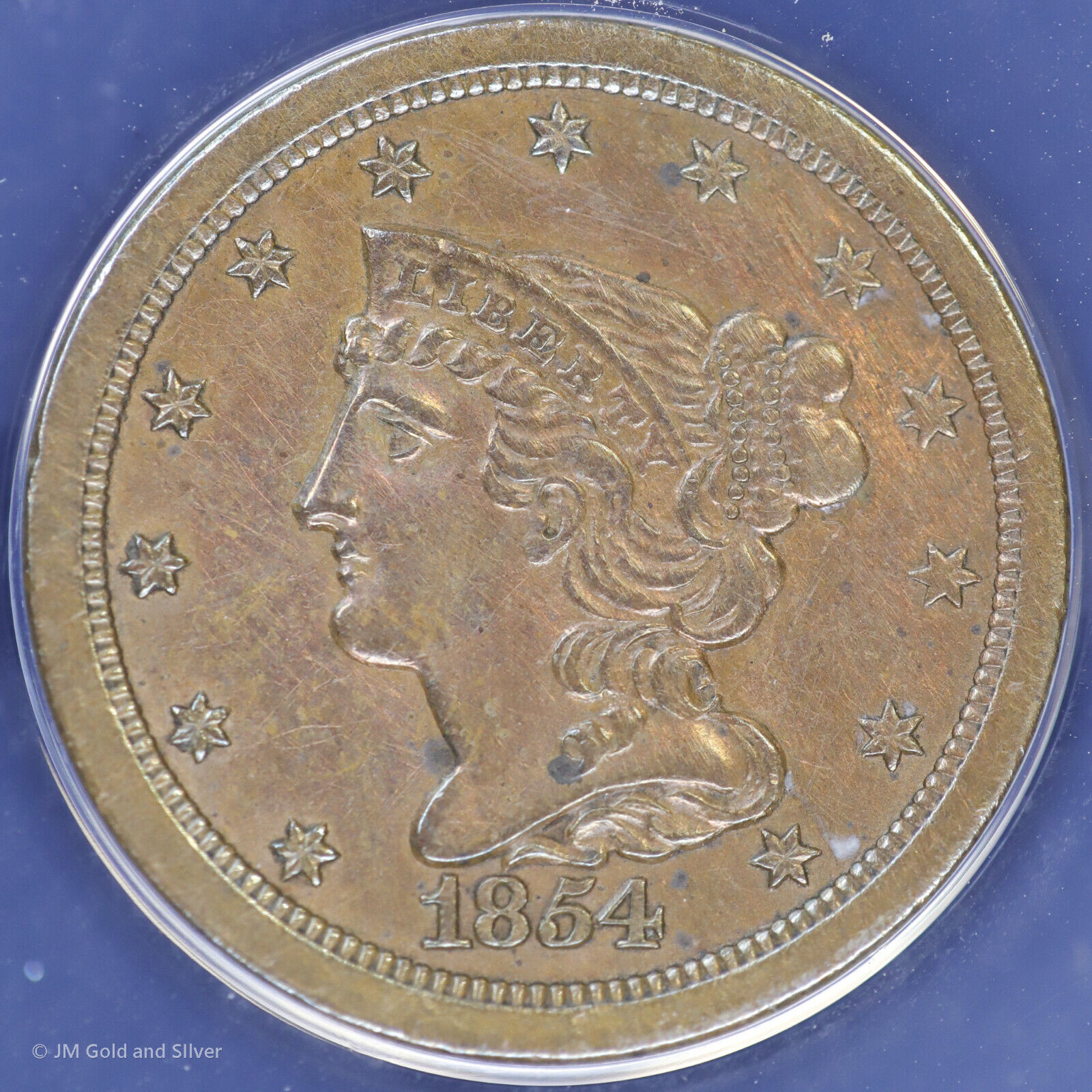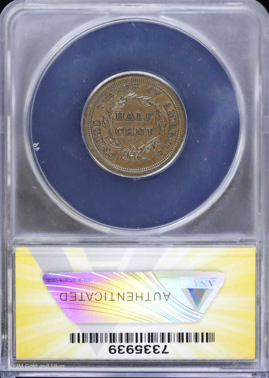 1854 P 1/2c Braided Hair Half Cent ANACS AU 58 Details | C-1