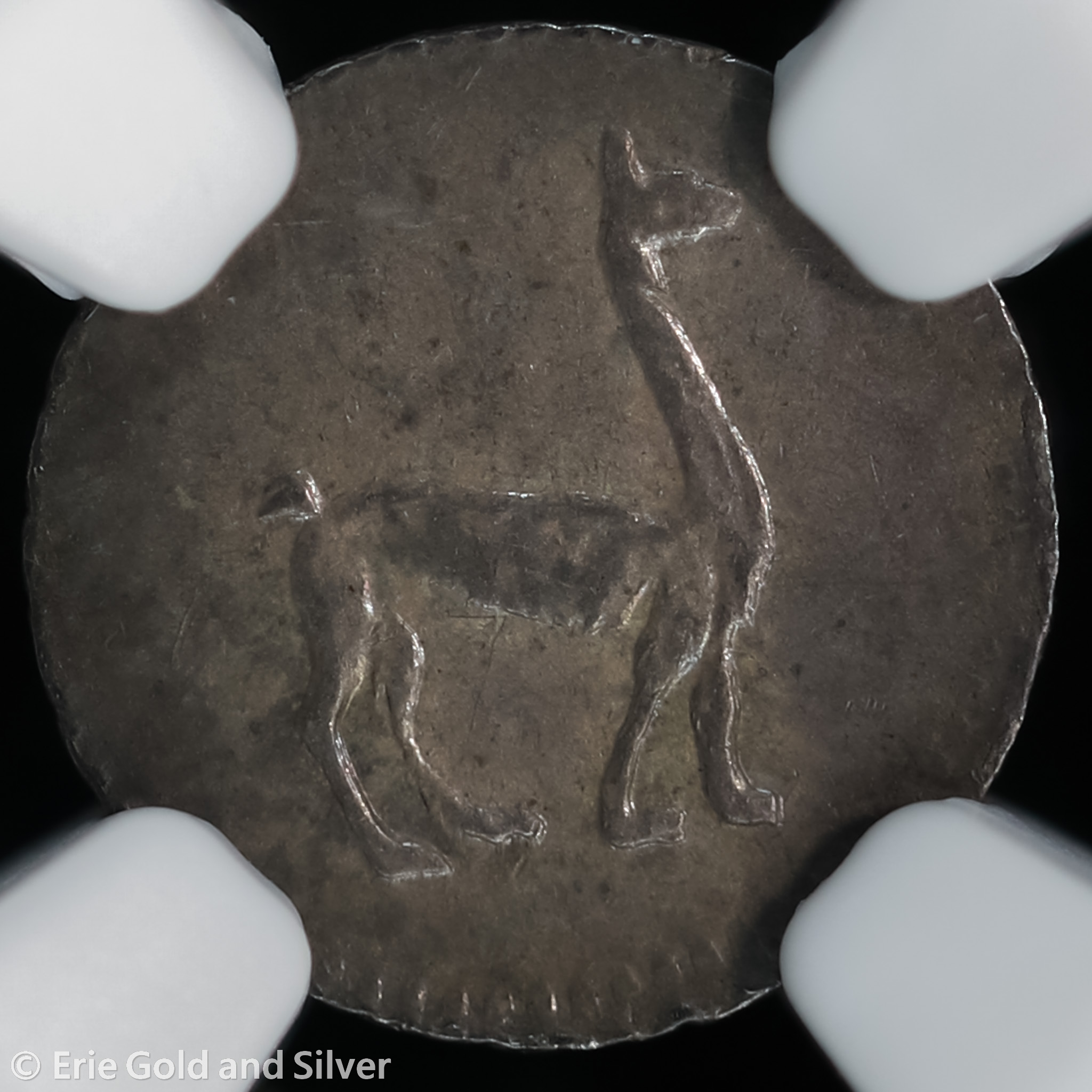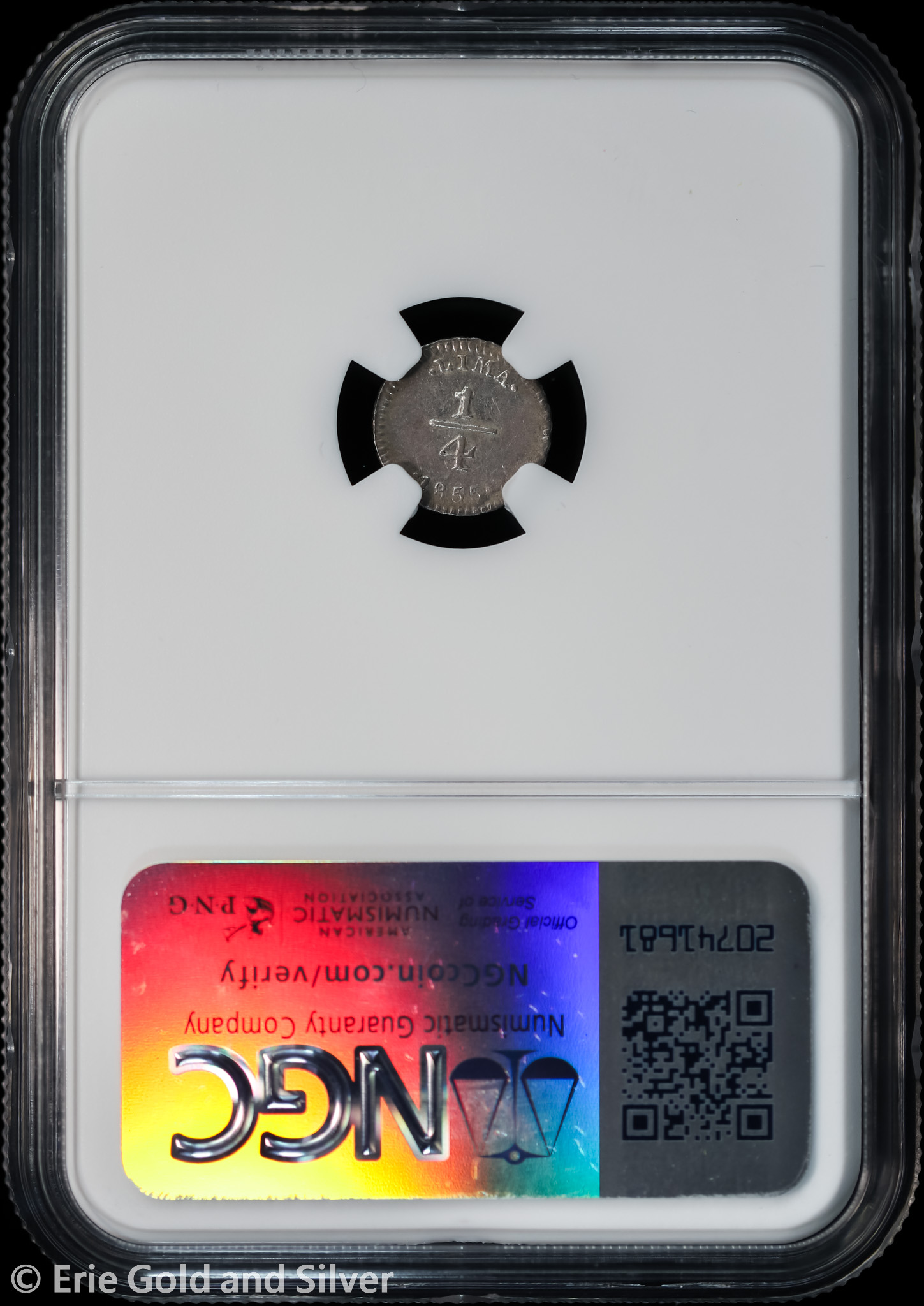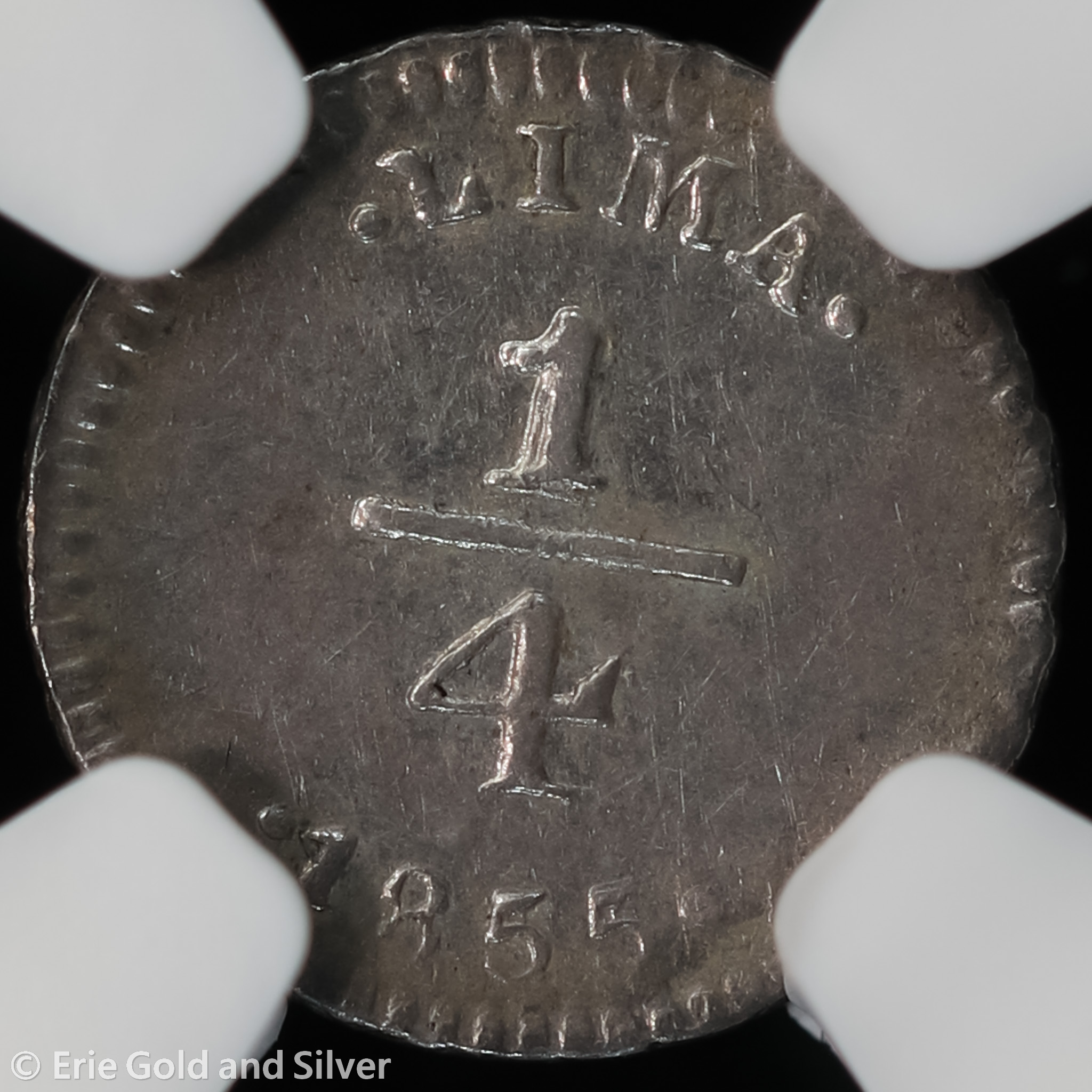 For sale is a 1855 Lima Peru Silver 1/4 Real Llama Coin. Certified / graded by NGC at MS 61.