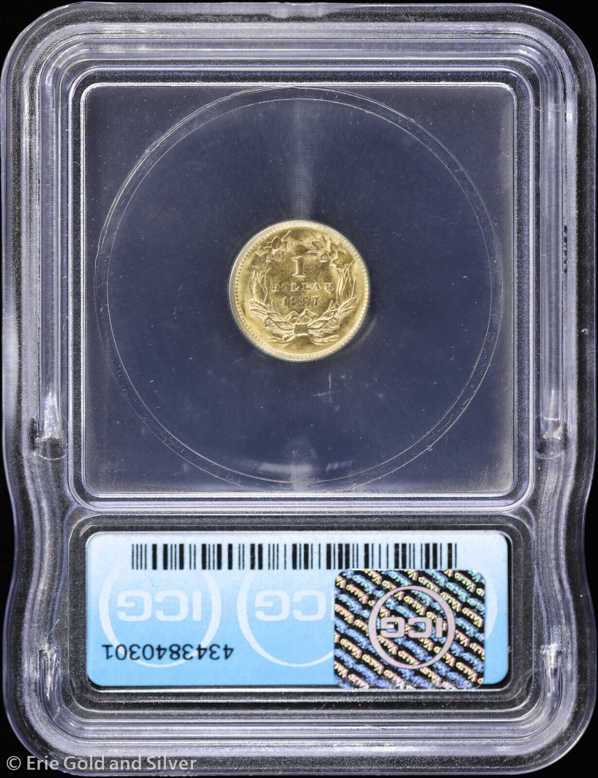 1857 $1 Indian Princess Gold Dollar Type 3 ICG MS 65