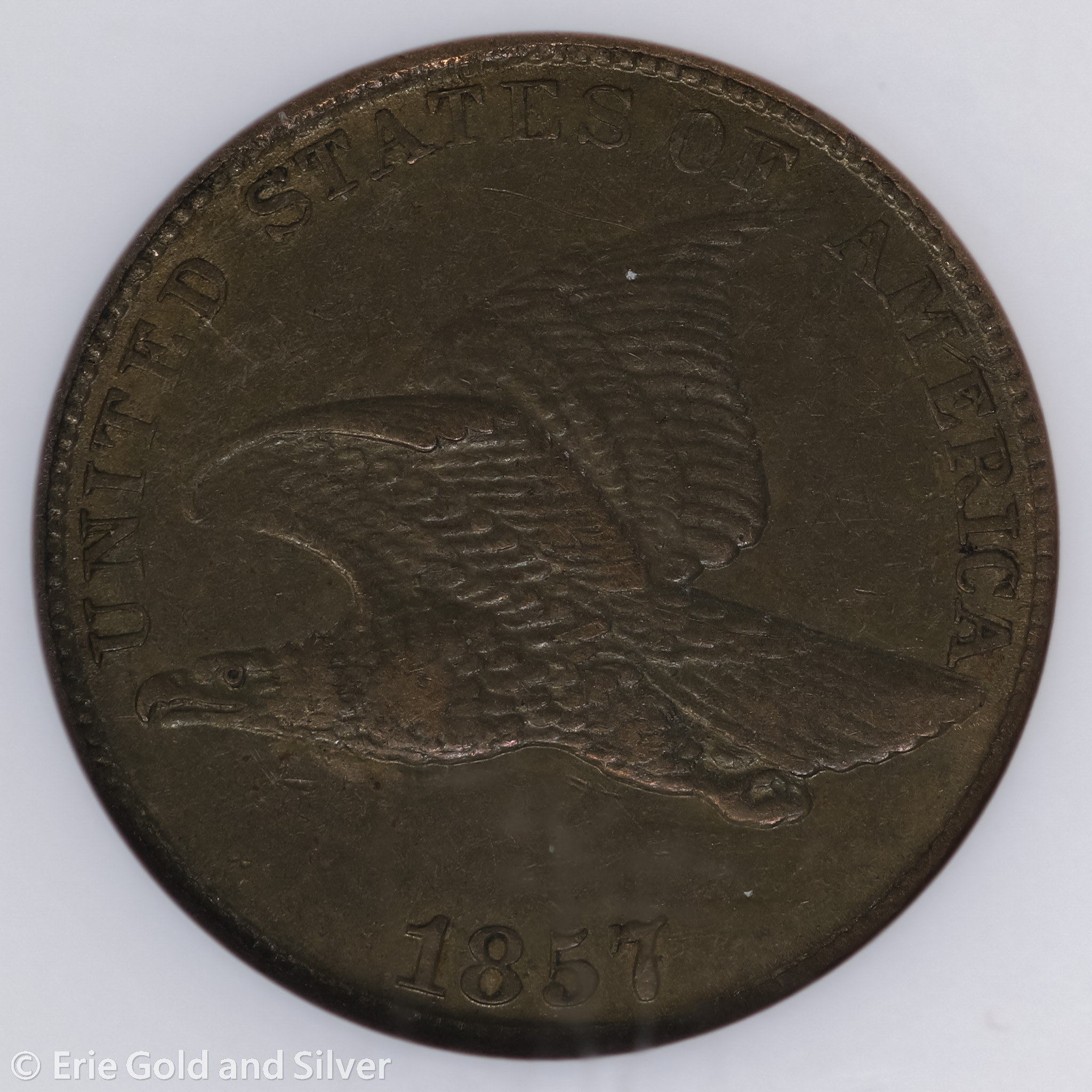 For sale is a 1857 Flying Eagle Small Cent. Certified / graded by ANACS at AU 53.