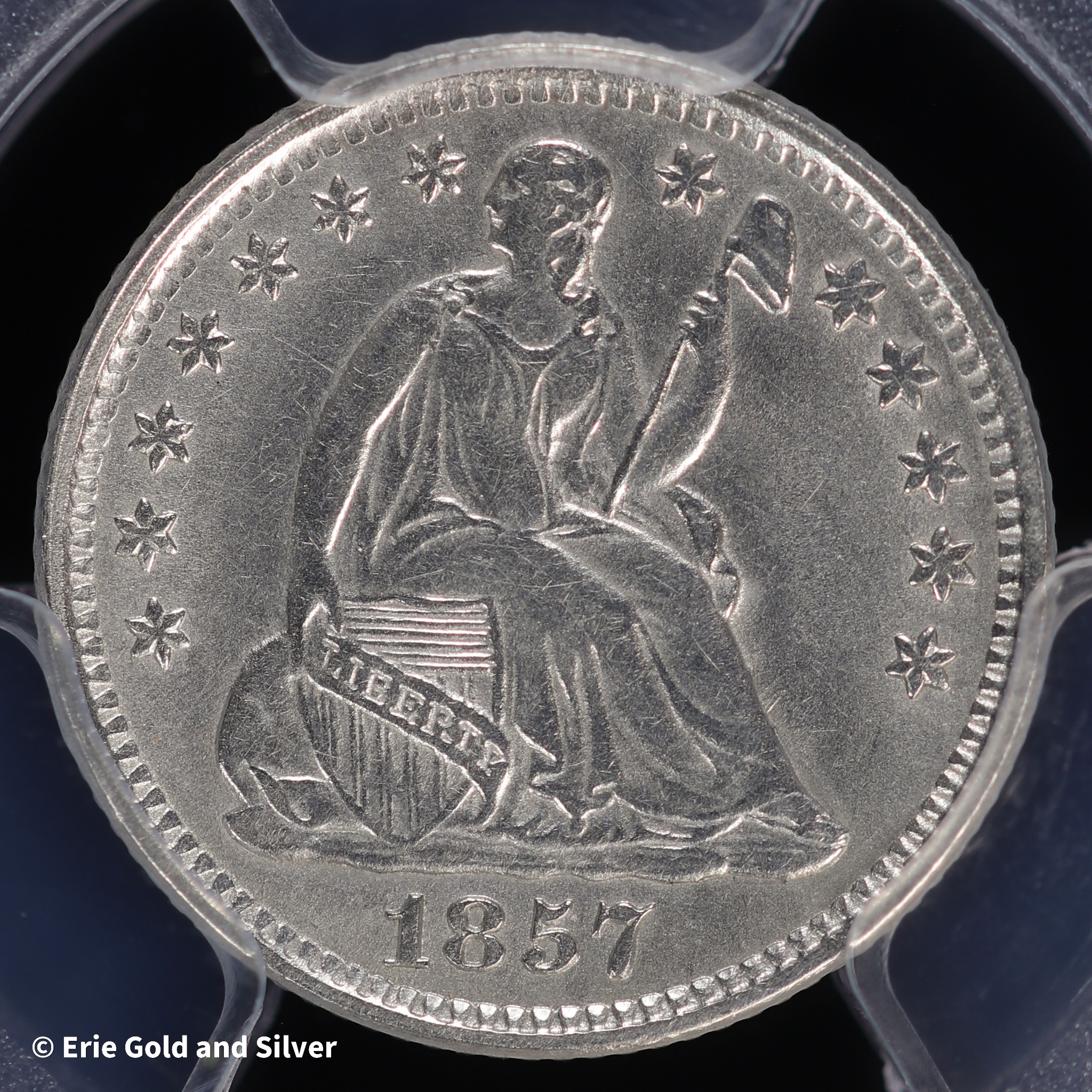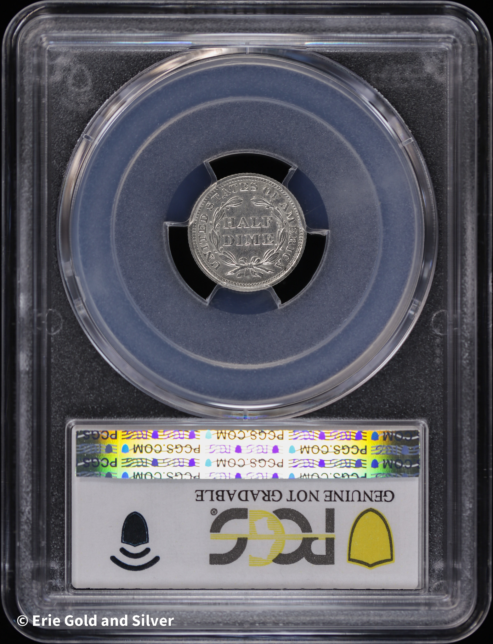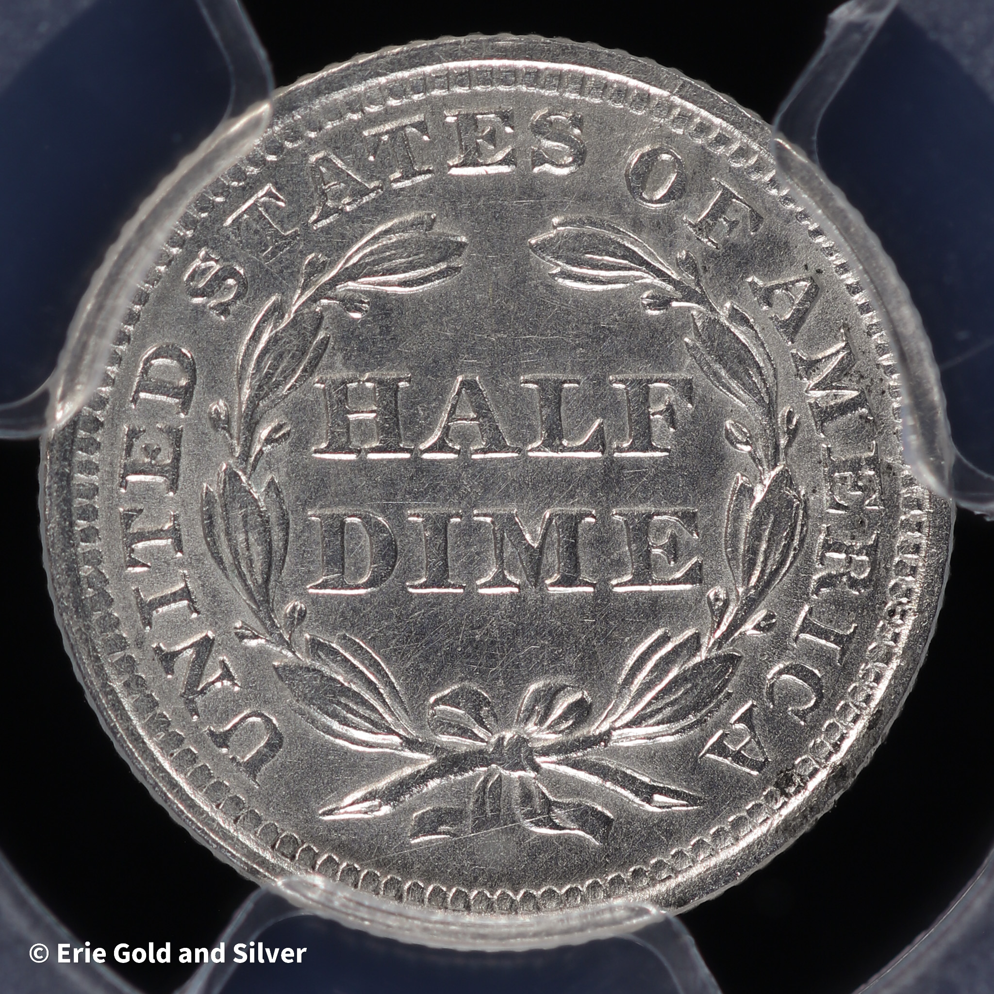 1857 H10C Seated Liberty Half Dime PCGS Genuine UNC Detail (Cleaned)