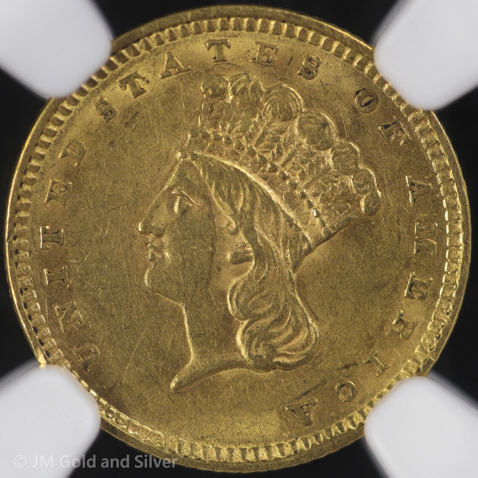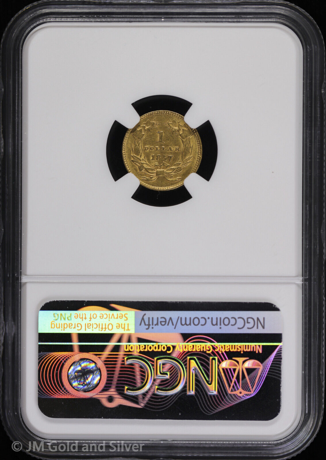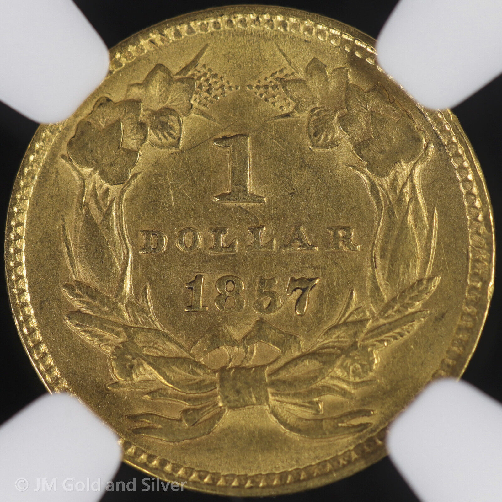 1857 Indian Princess Head Gold Dollar NGC AU 58 CAC Large Head About Almost Unc.