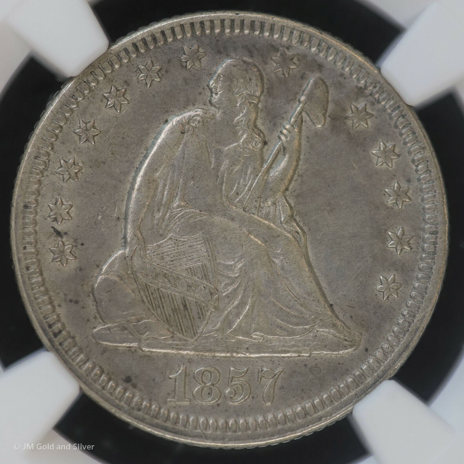 1857 P 25c Seated Liberty Quarter NGC AU Details