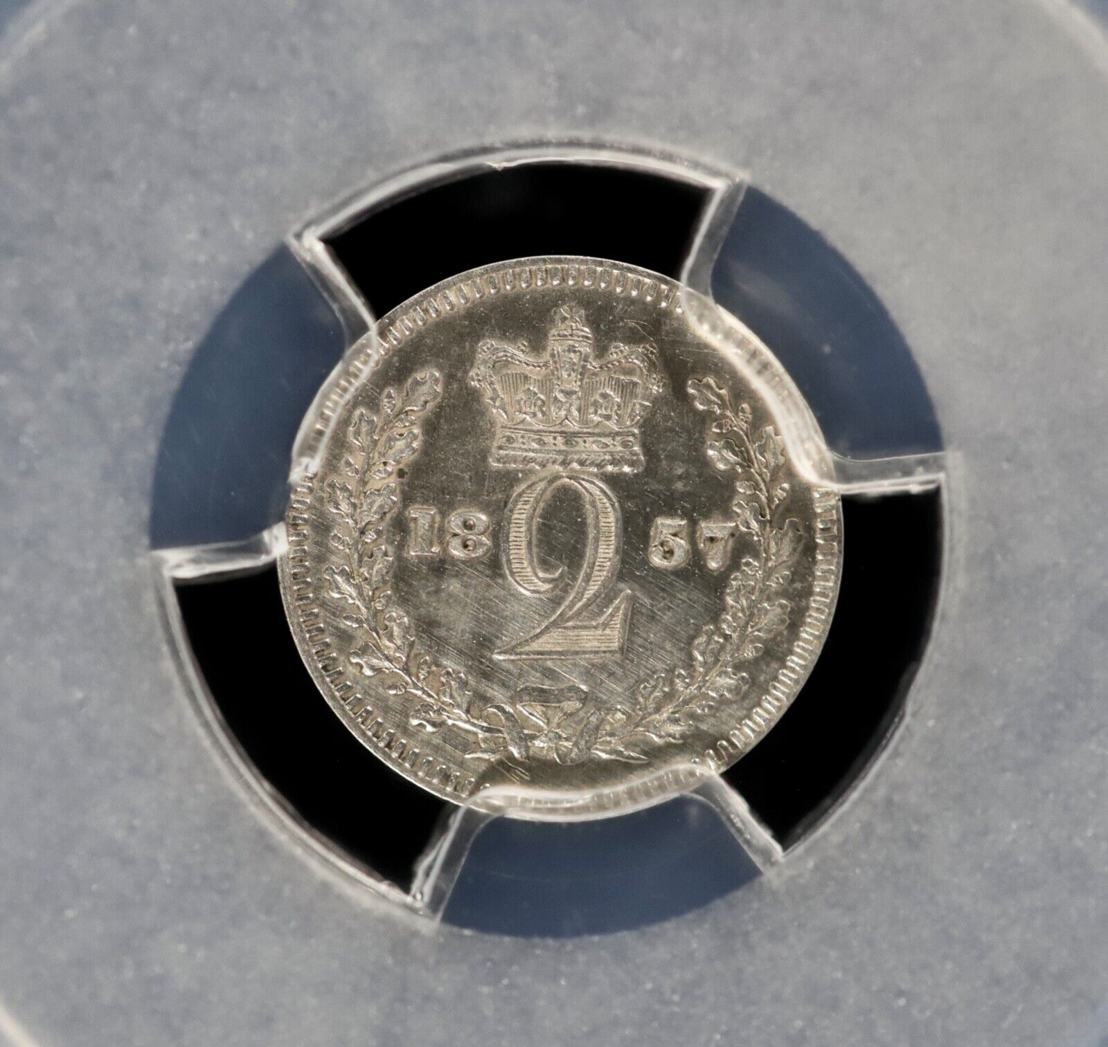 1857 Victoria England Great Britain Silver Maundy 2 Pence 2D PCGS PL AU Detail