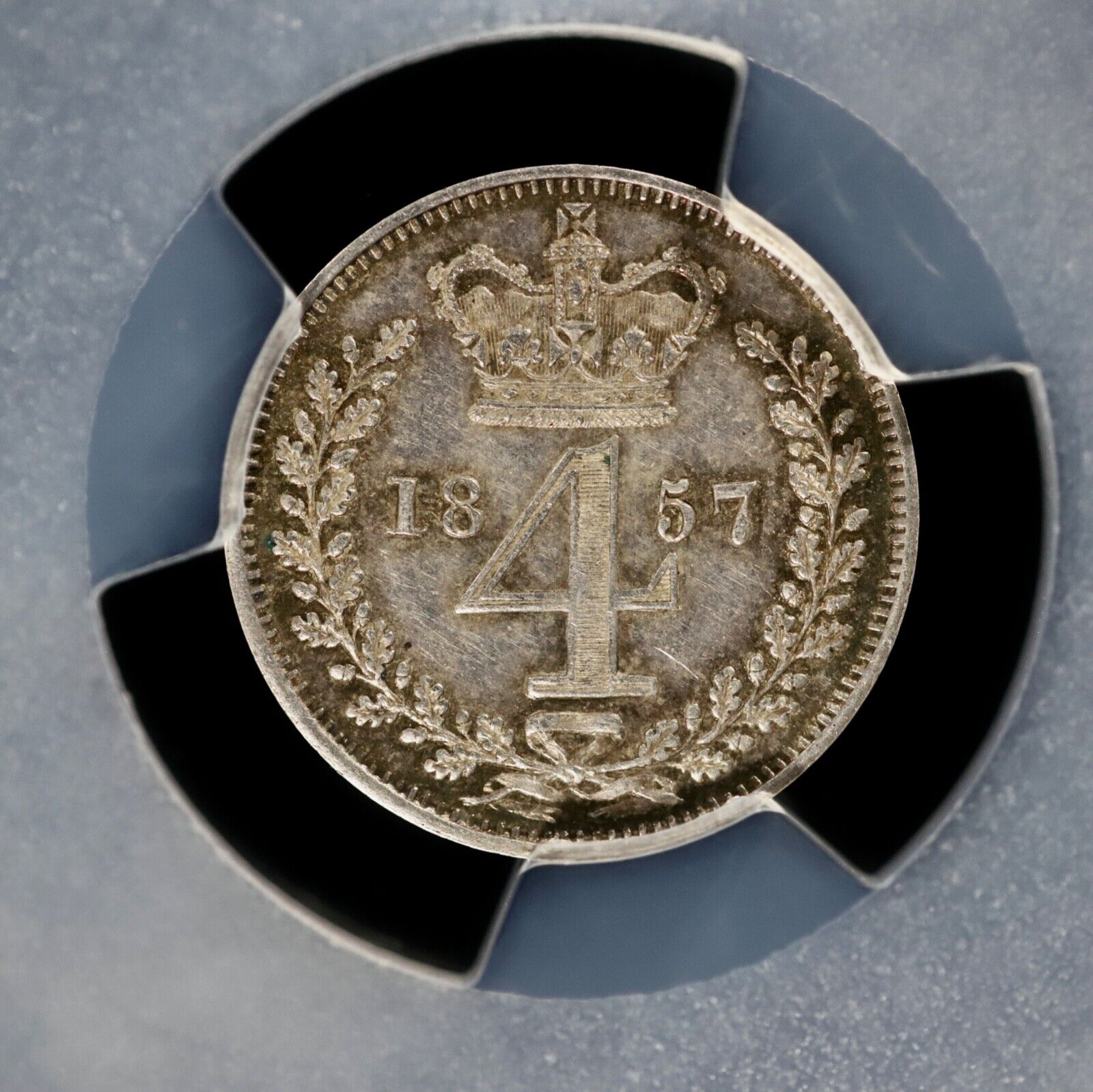 1857 Victoria England Great Britain Silver Maundy 4 Pence Groat 4D PCGS PL58 AU