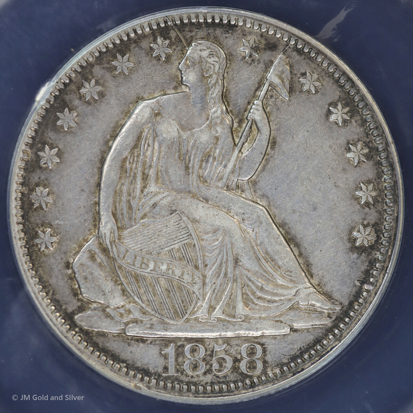 1858 P 50c Seated Liberty Half 1/2 Dollar ANACS EF 45 Details | XF