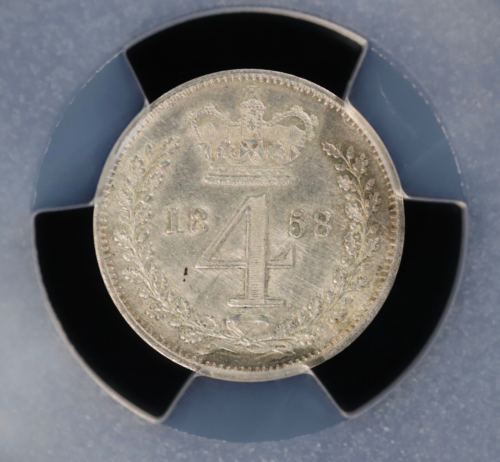 1858 Victoria England Great Britain Silver Maundy 4 Pence 4D PCGS PL UNC Detail