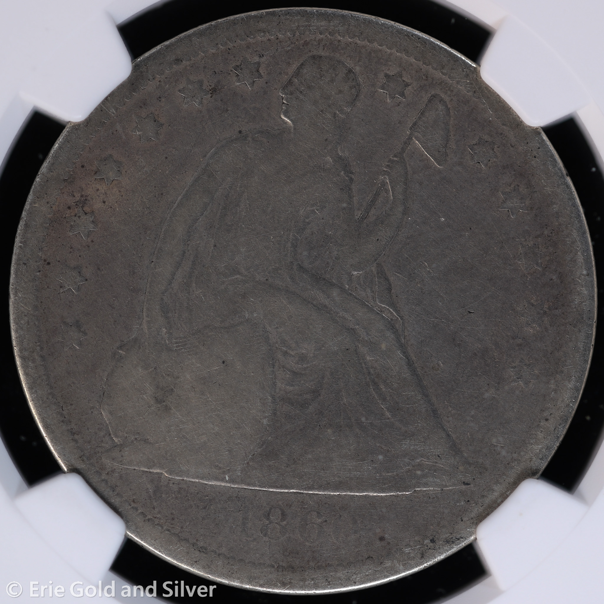 For sale is a 1860-O Seated Liberty Silver Dollar. Certified / graded by NGC at Good Details.