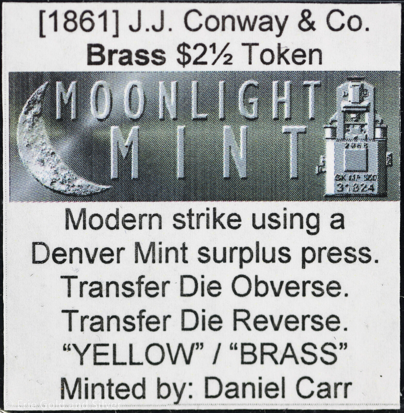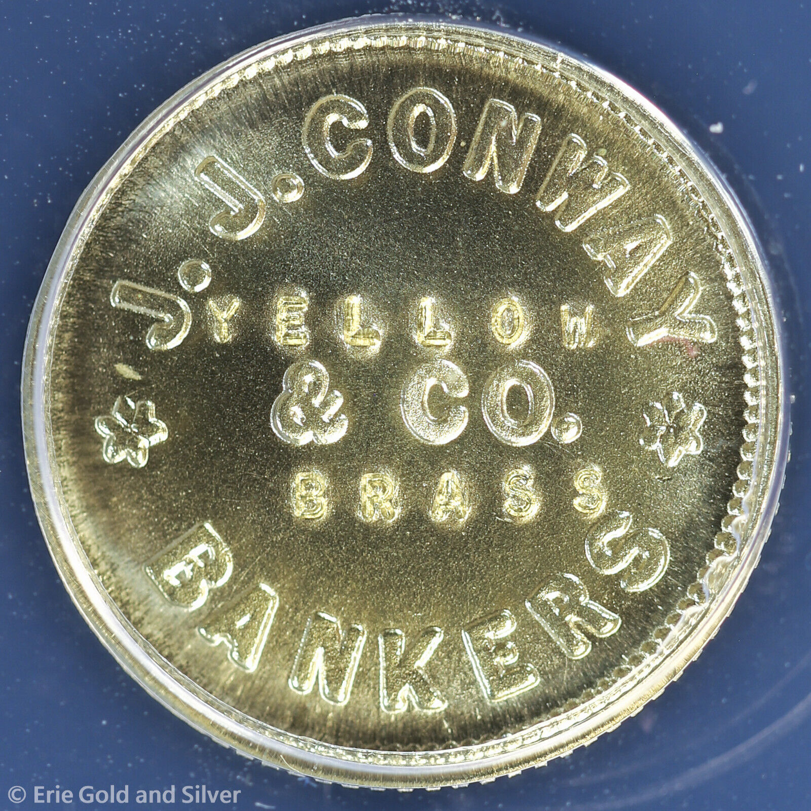 1861 $2.50 Dan Carr J.J. Conway & Co. Yellow Brass Token ANACS MS 69 | w/ COA