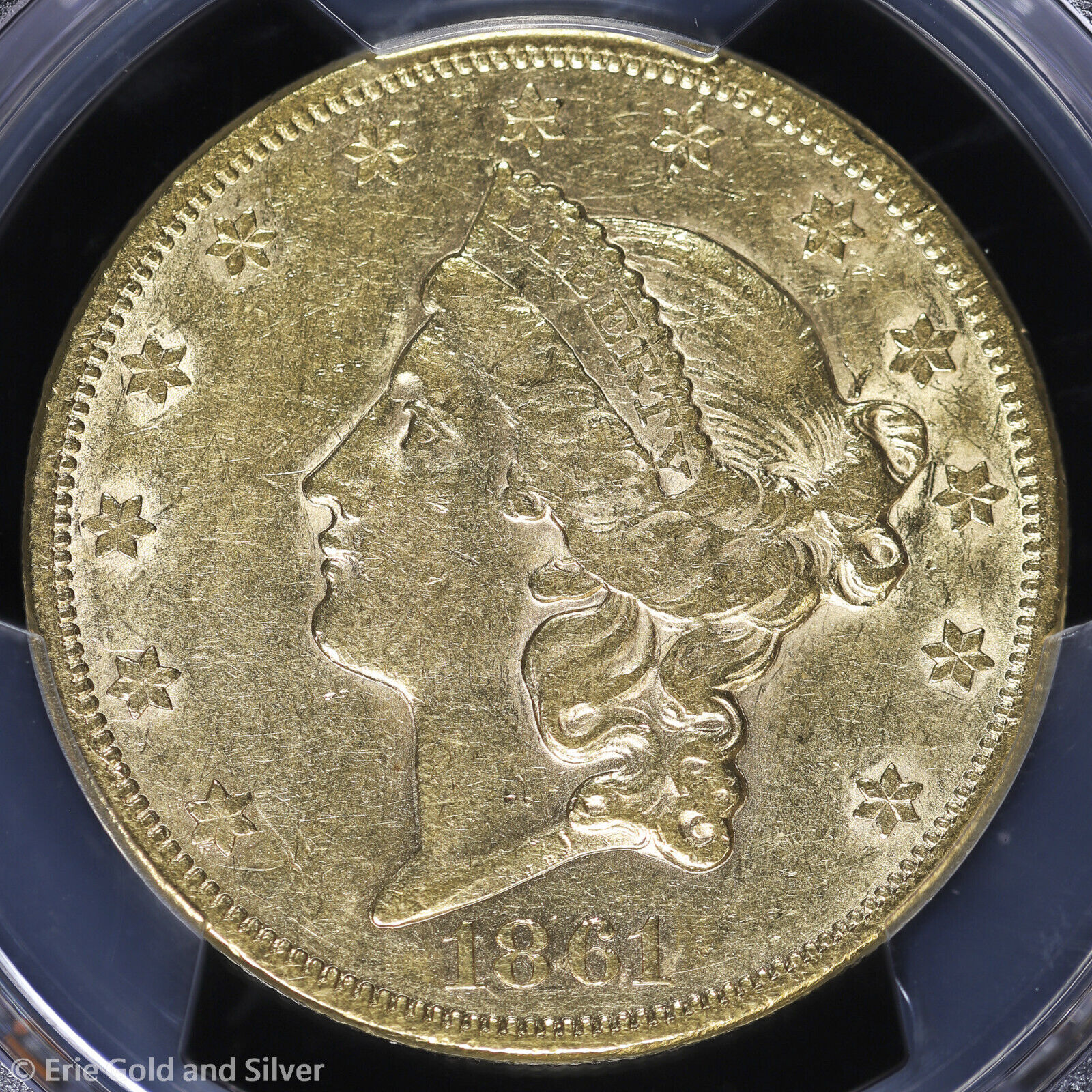 1861 $20 Gold Liberty Head Double Eagle PCGS AU 50