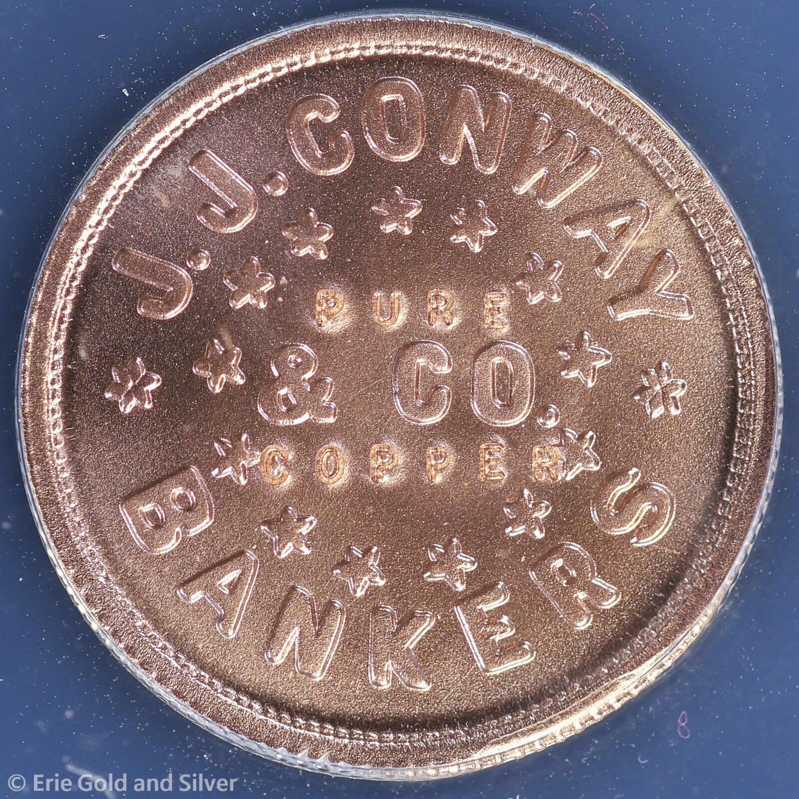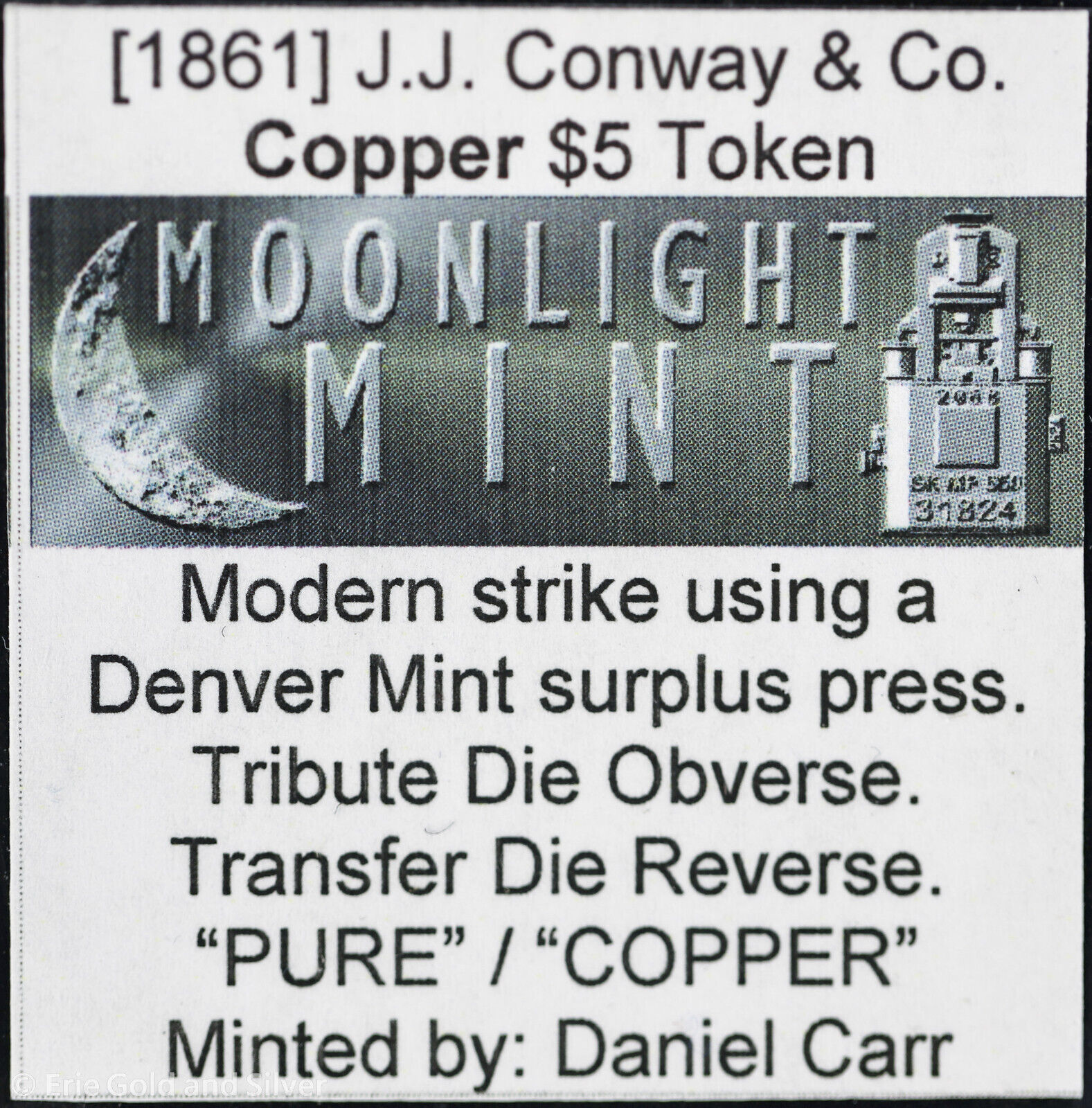 1861 $5 Dan Carr J.J. Conway & Co. Copper Token ANACS MS 70 Red | w/ COA