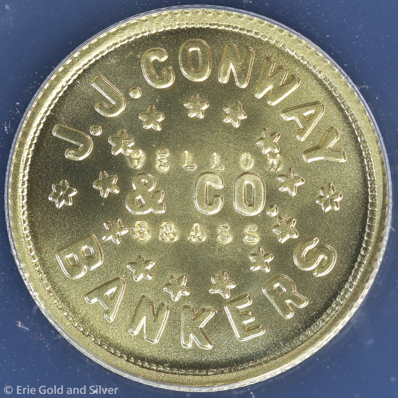 1861 $5 Dan Carr J.J. Conway & Co. Yellow Brass Token ANACS MS 69 | w/ COA