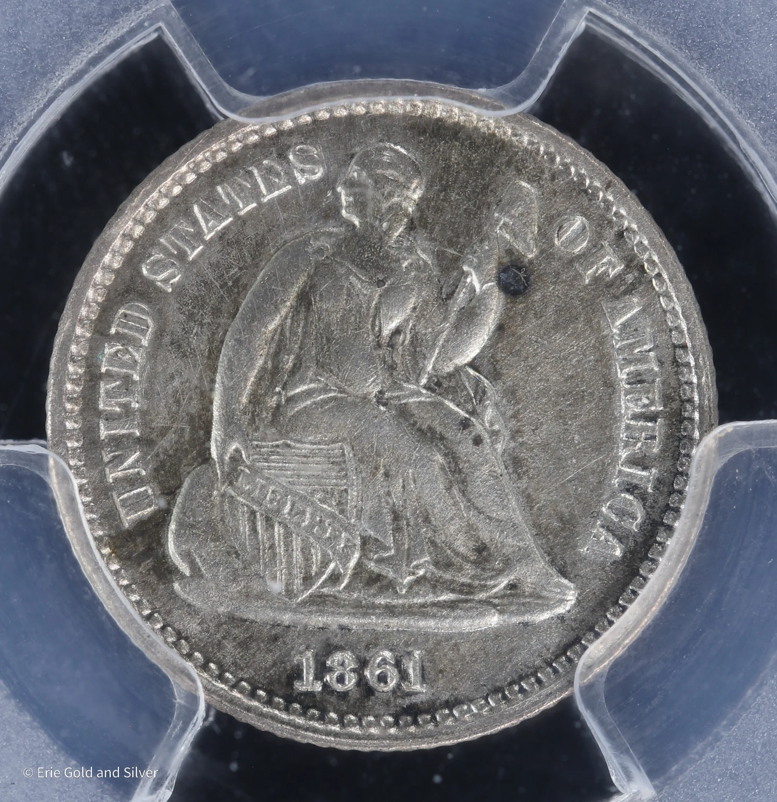 1861 H10C Seated Liberty Silver Half Dime PCGS Genuine AU Detail