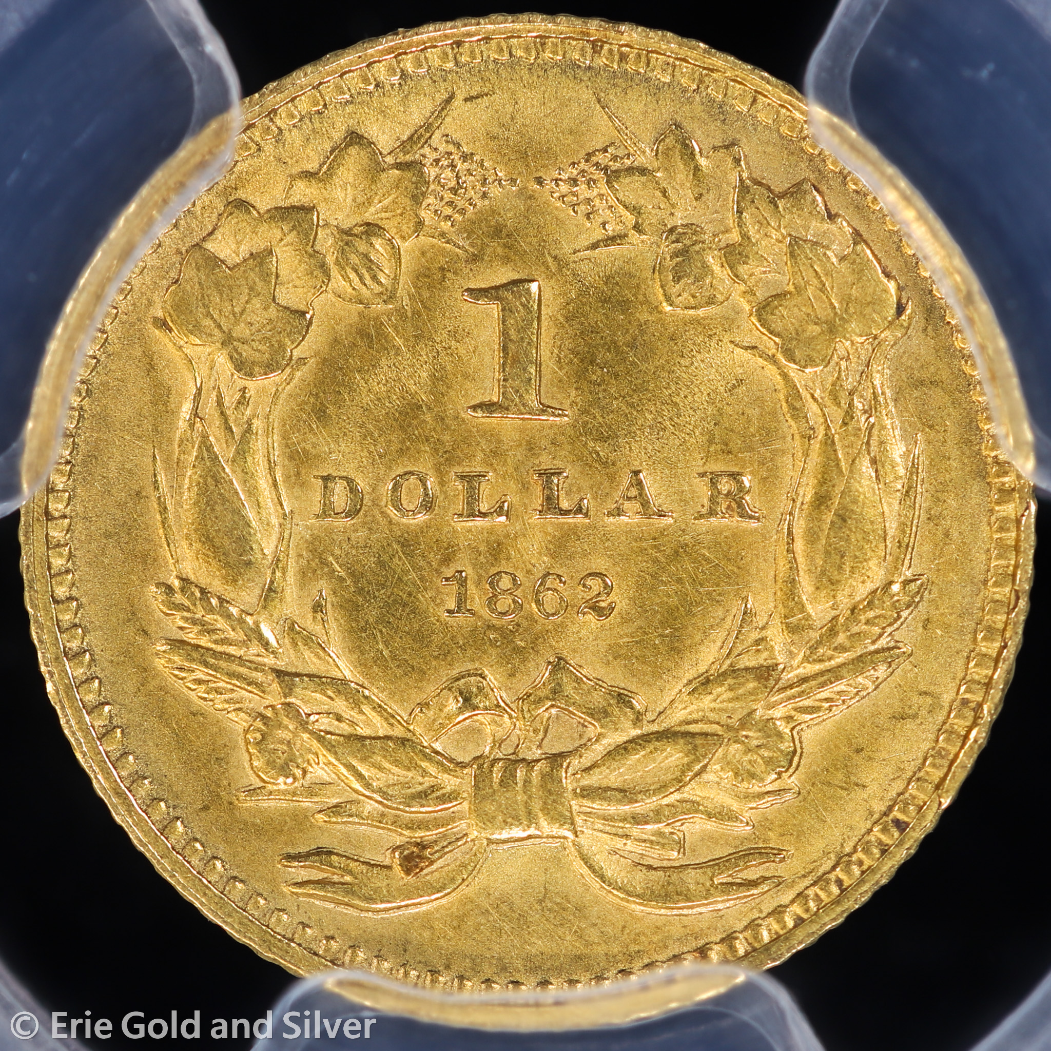 1862 Indian Princess Head Gold Dollar PCGS Genuine UNC Detail (Cleaned)