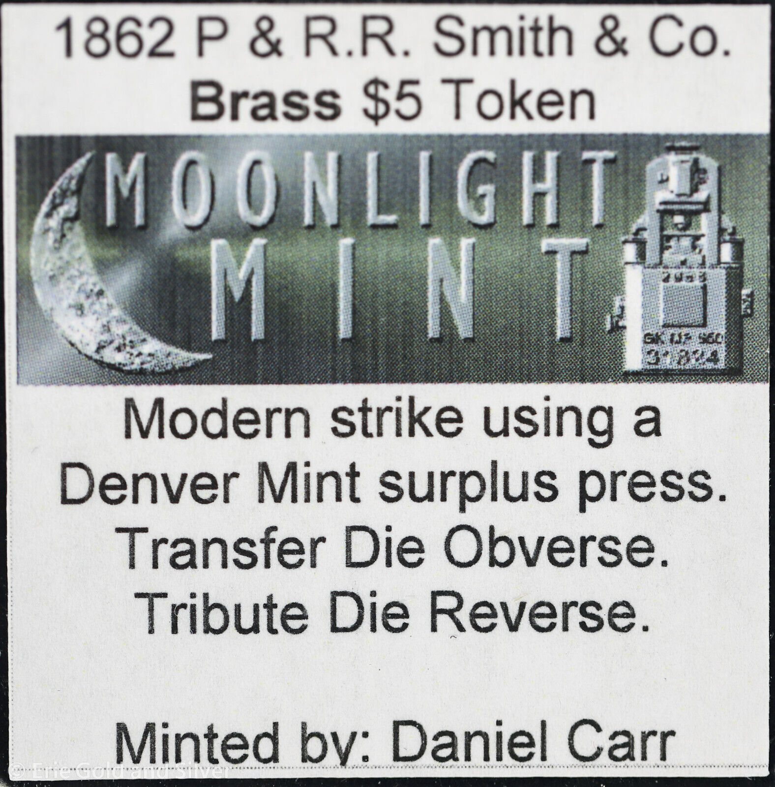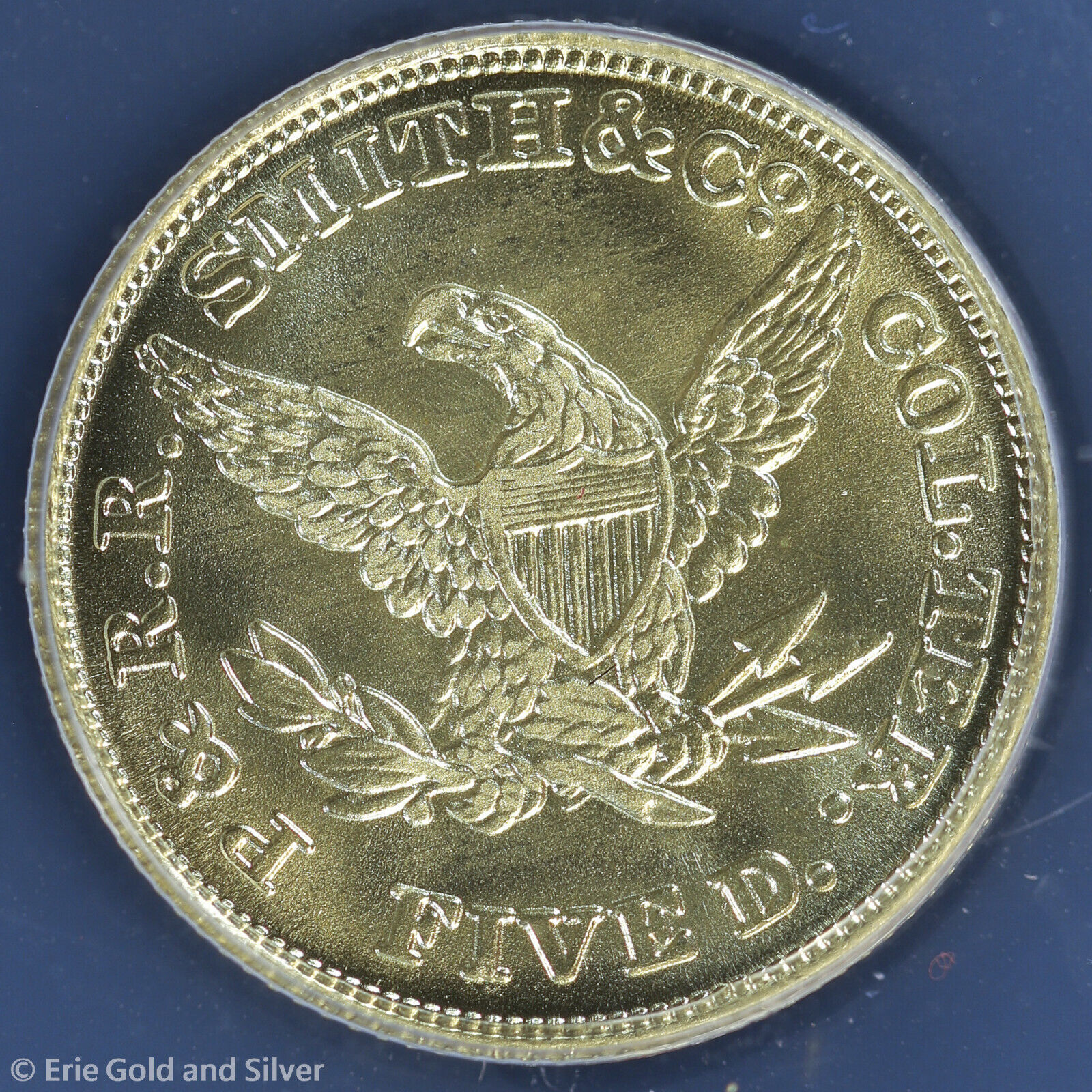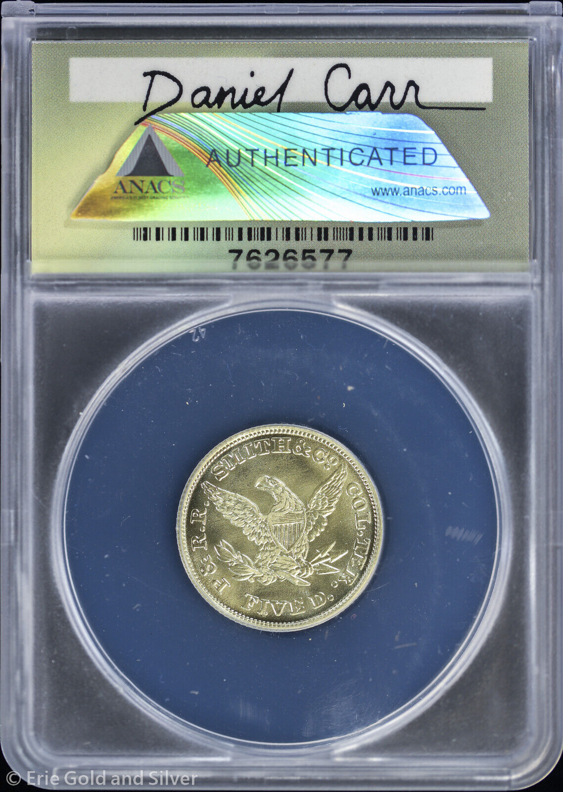 1862 $5 Dan Carr P & R.R. Smith & Co. Brass Token ANACS MS 70 | w/ COA