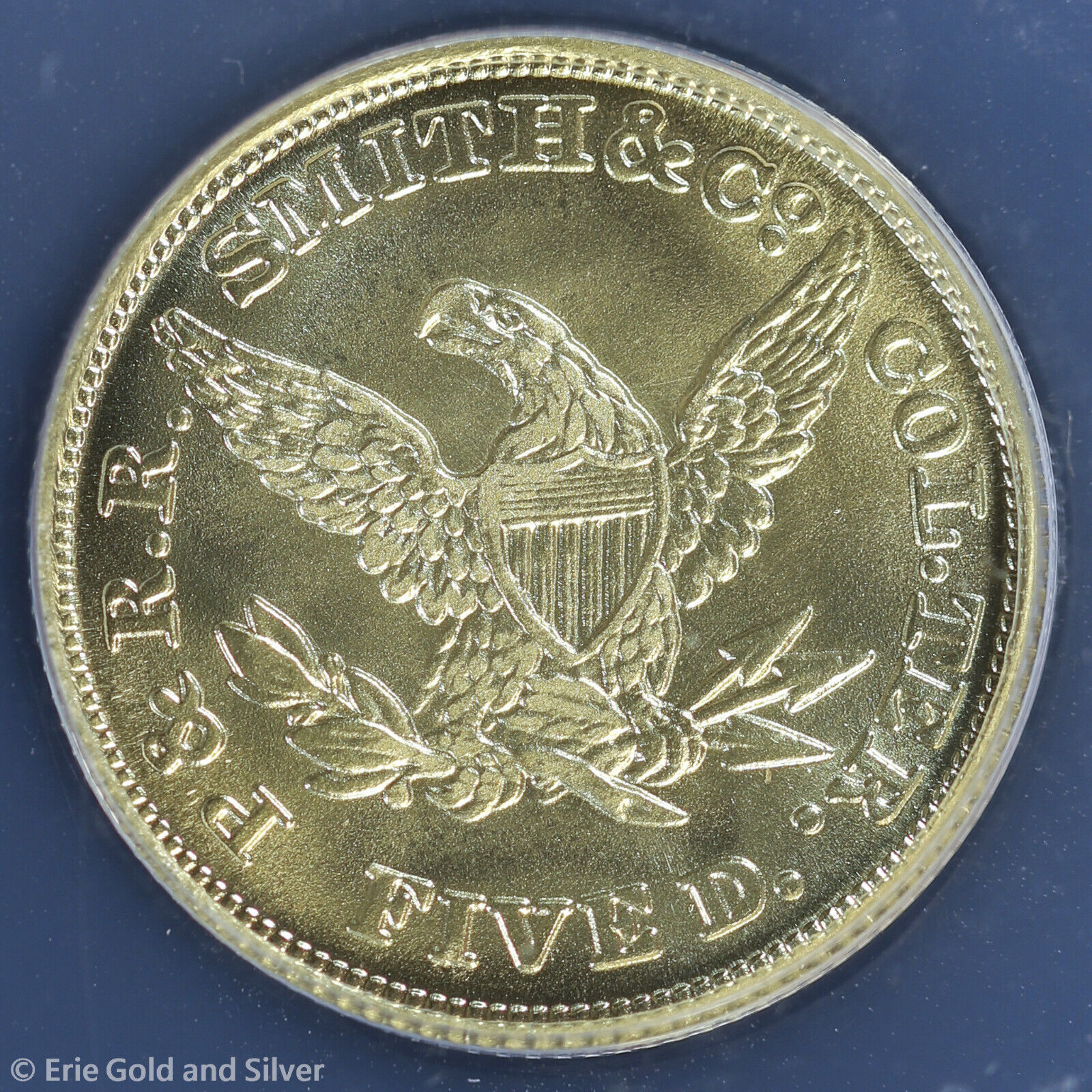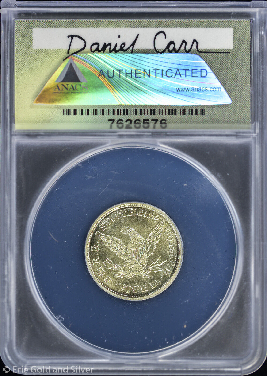 1862 $5 Dan Carr P & R.R. Smith & Co. Brass Token ANACS MS 70 | w/ COA