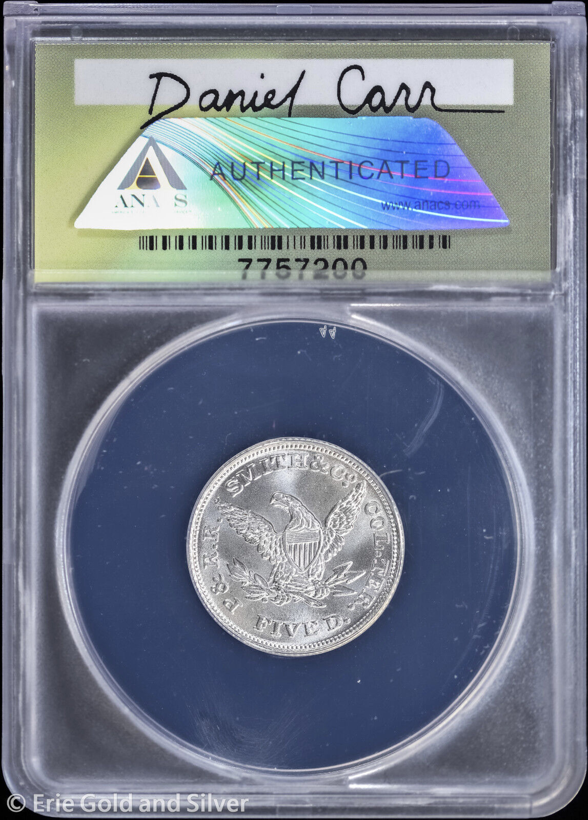 1862 $5 Dan Carr P & R.R. Smith & Co. Silver Token ANACS MS 69 | w/ COA