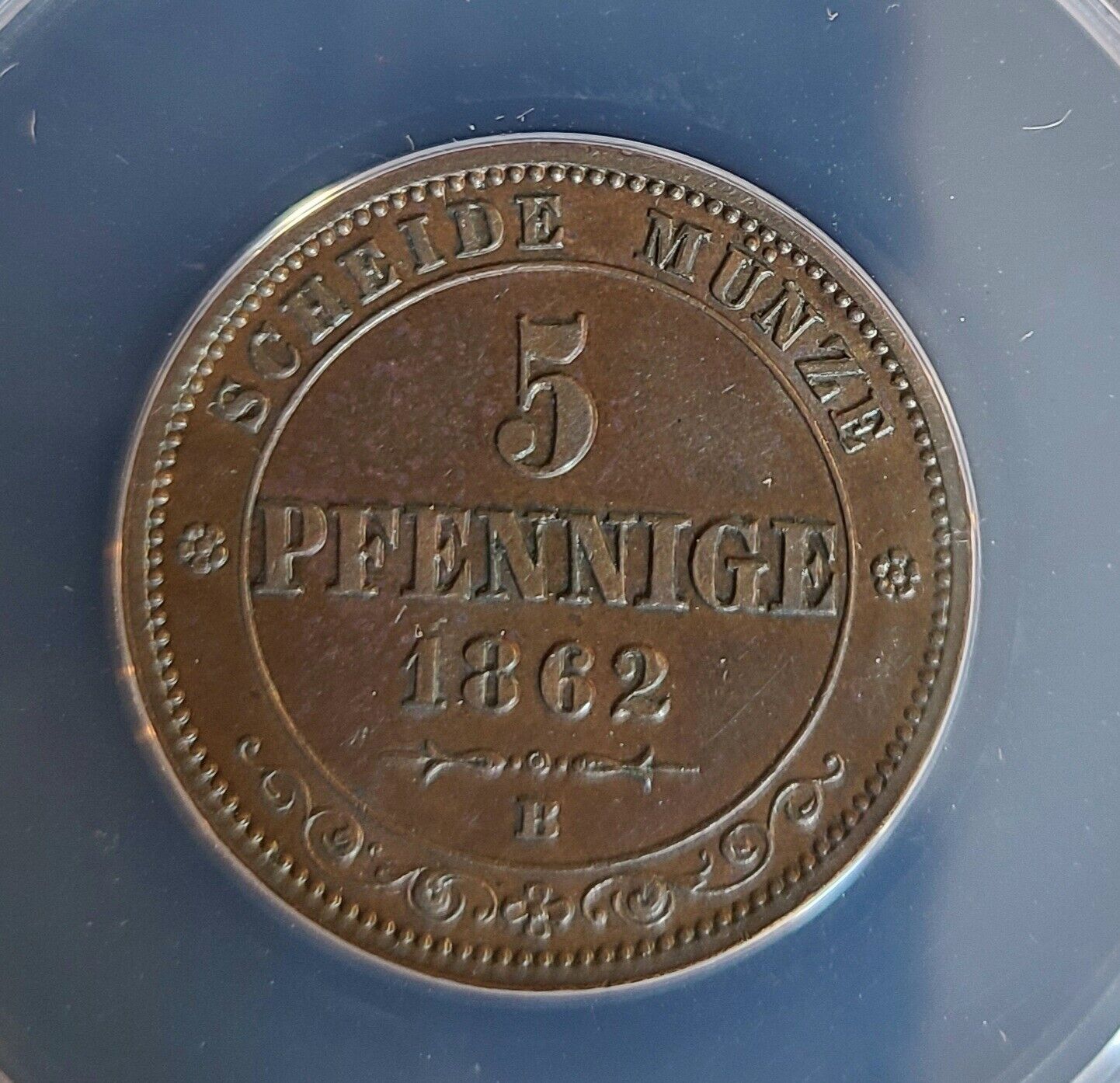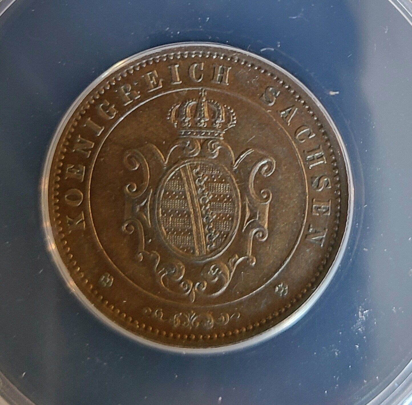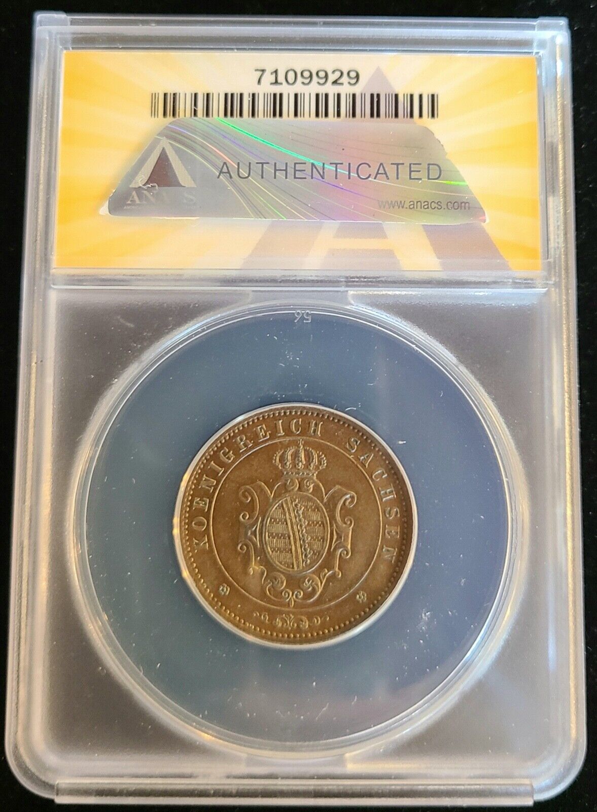 1862-B Germany Saxony 5 Pfennig Copper ANACS AU 58 | KM#1218