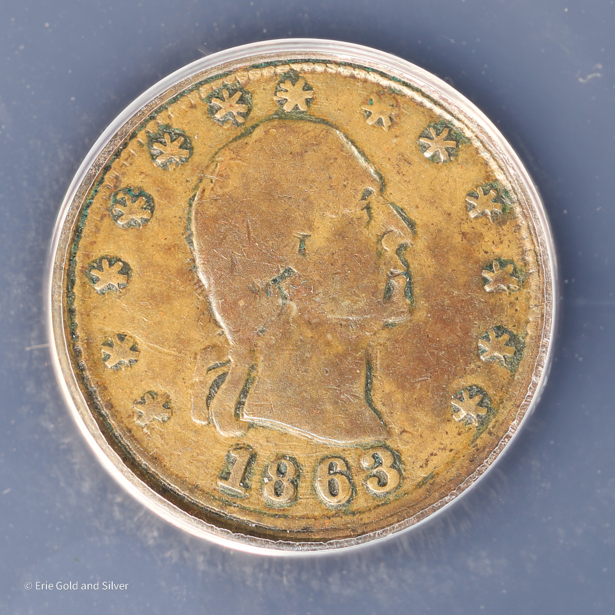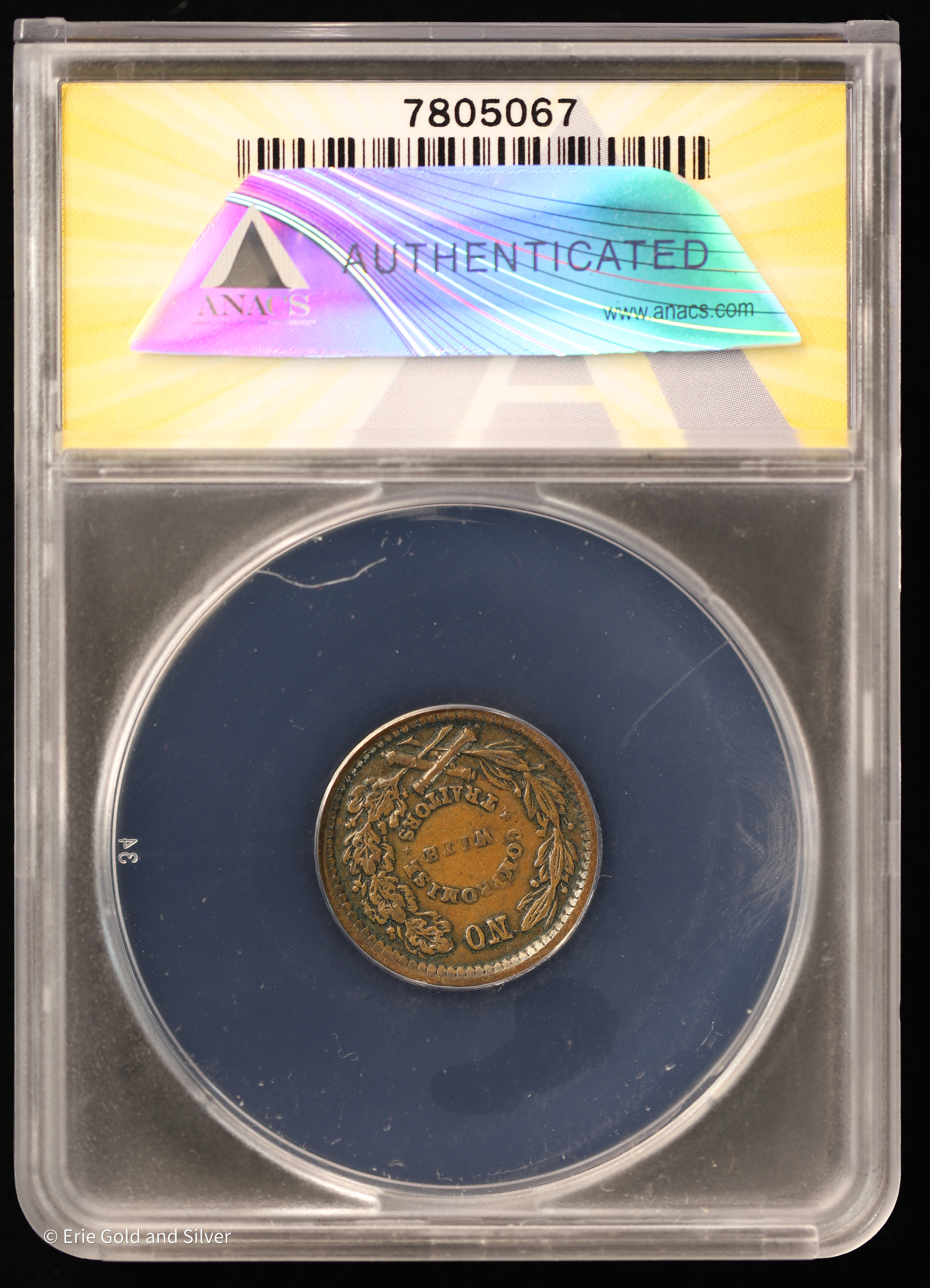 For sale is a 1863 No Compromise With Traitors Patriotic Civil War Token. Certified / graded by ANACS at VF 20.