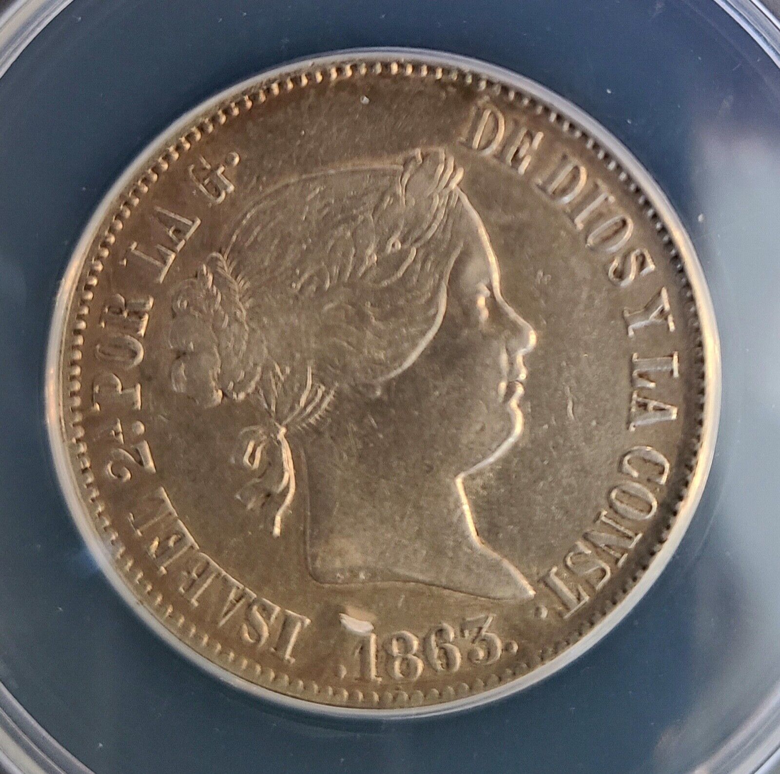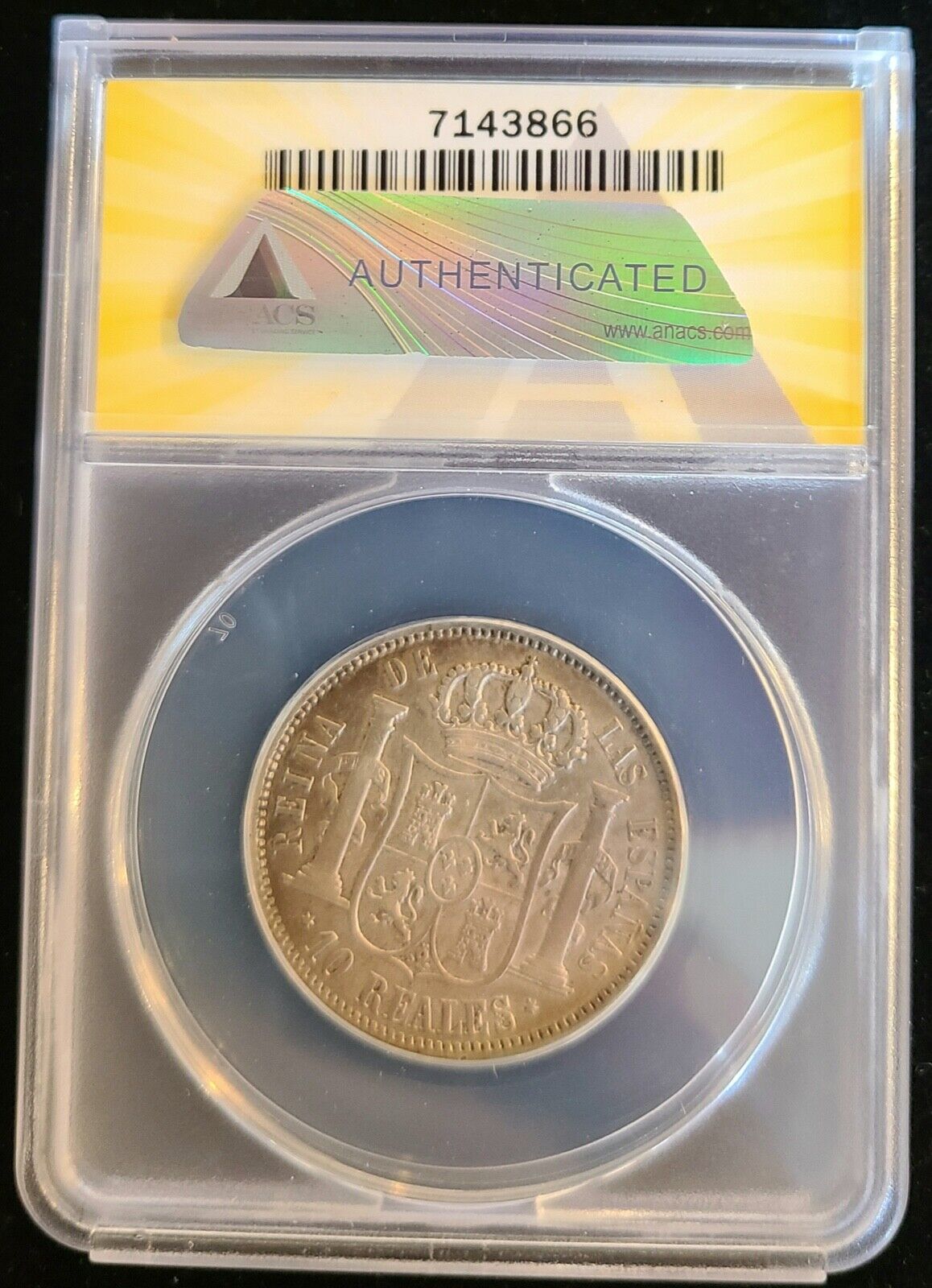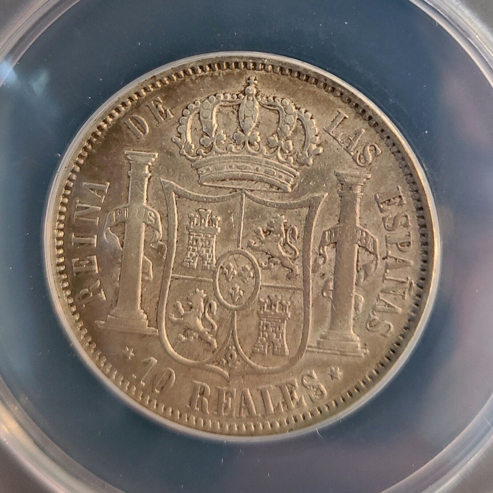 1863 Spain 10 Reales Silver ANACS XF 45 Isabel II KM#611 Pillar