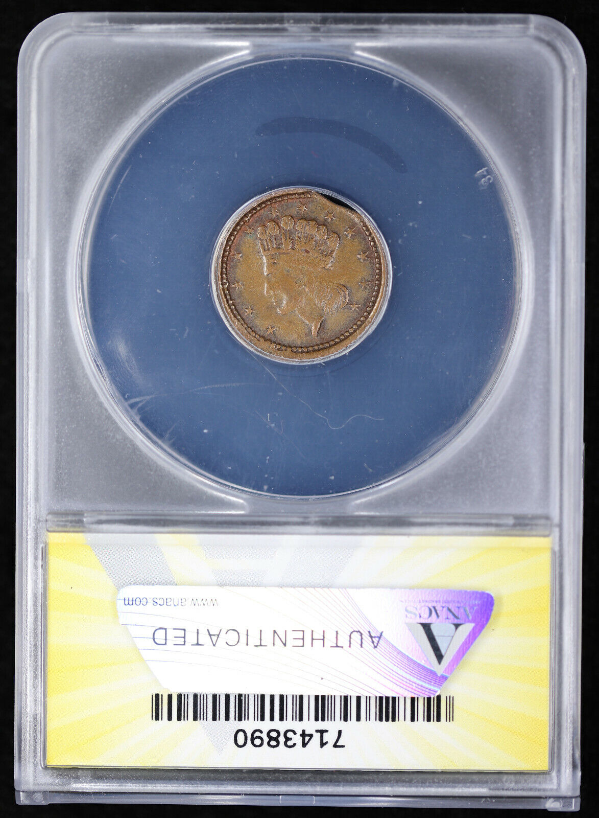 1864 Civil War Patriotic Token Union For Ever ANACS AU 58 | Curved Clip Error