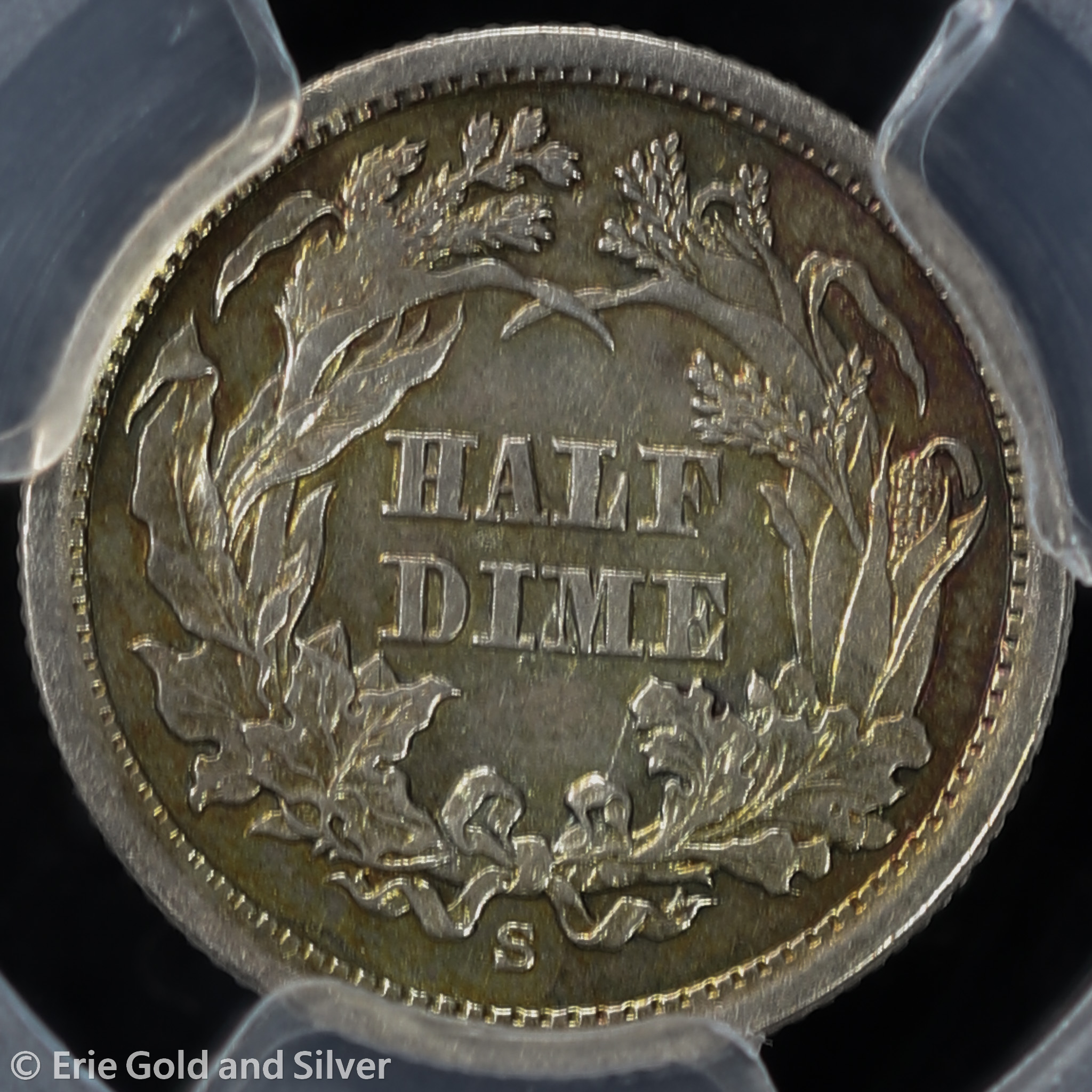 1864-S Seated Liberty Half Dime PCGS Genuine AU Detail (Cleaned)