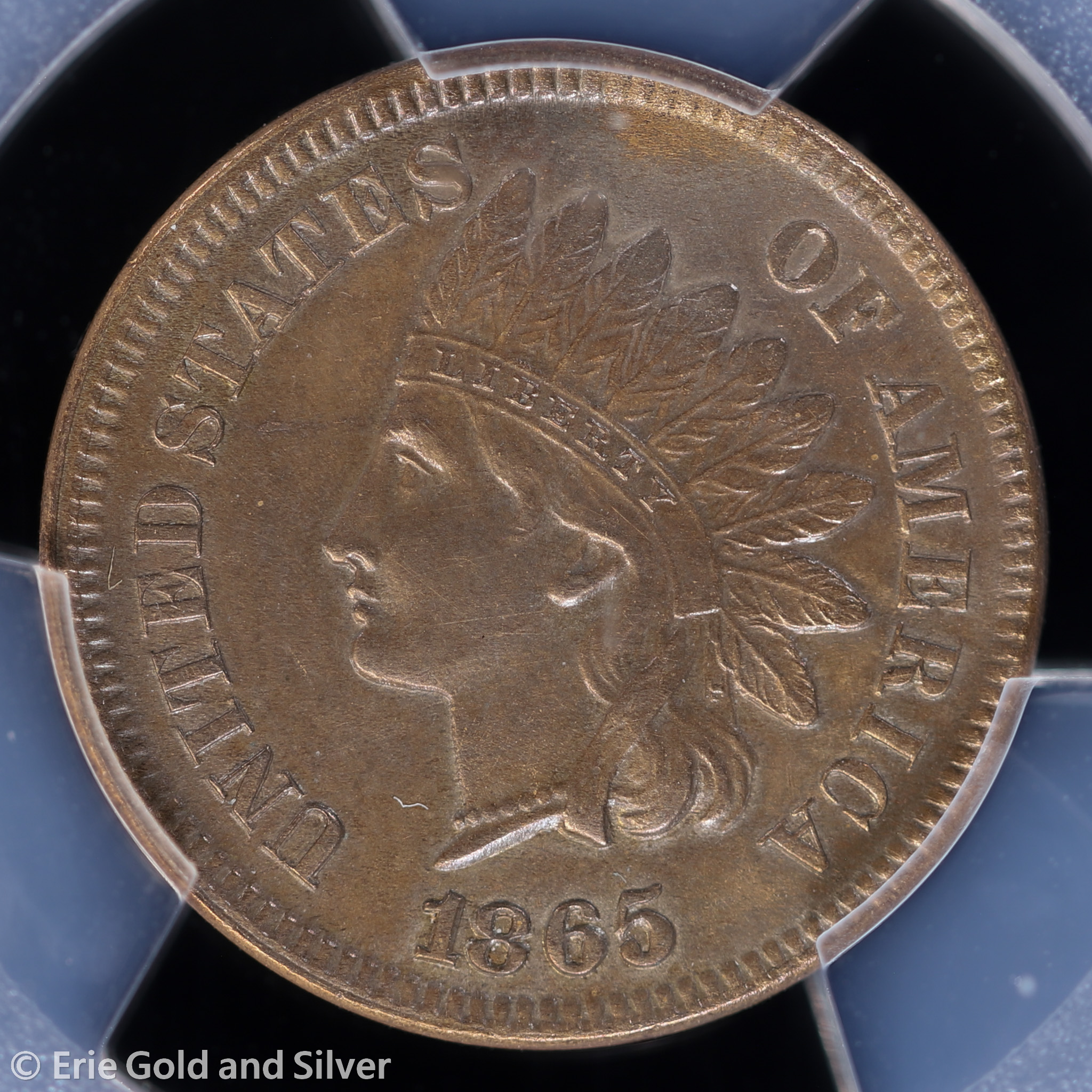 For sale is a 1865 Indian Head Cent. Certified / graded by PCGS at Genuine AU Detail.