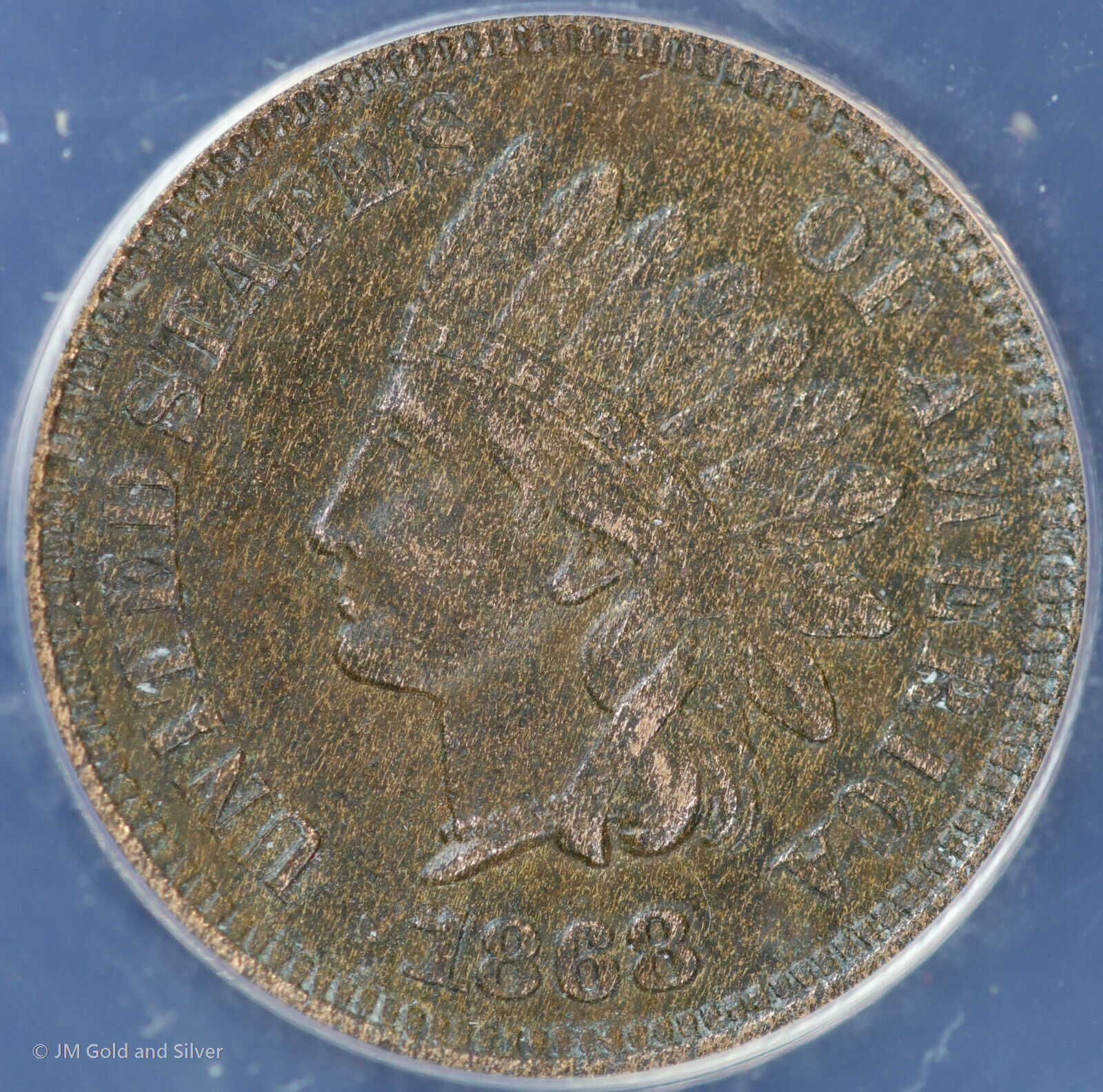 1868 1C Indian Head Cent ANACS AU 50 Details (Corroded)