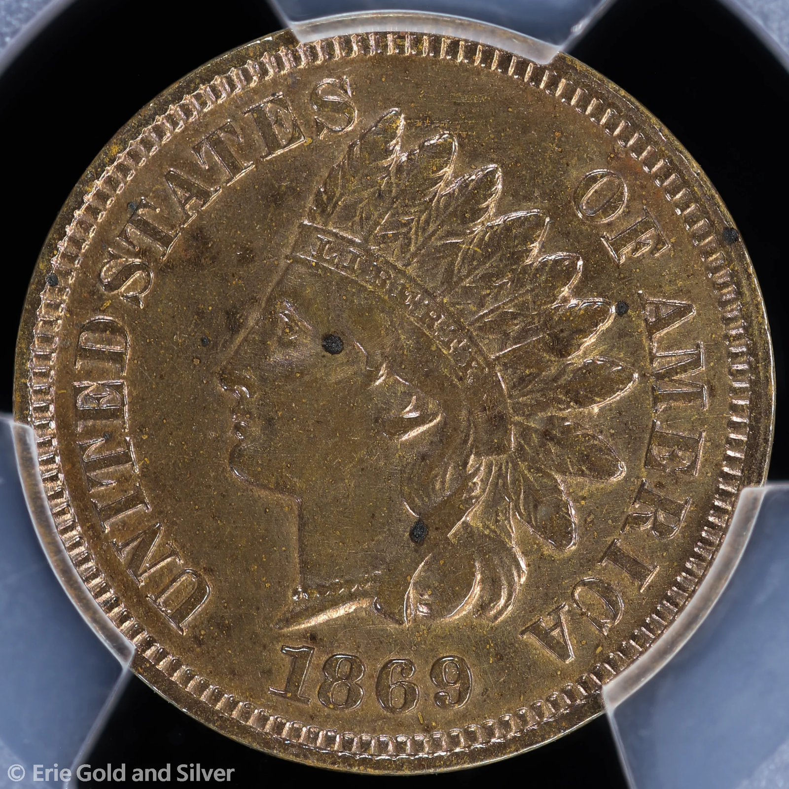 1869 1c Indian Head Cent PCGS Genuine AU Detail