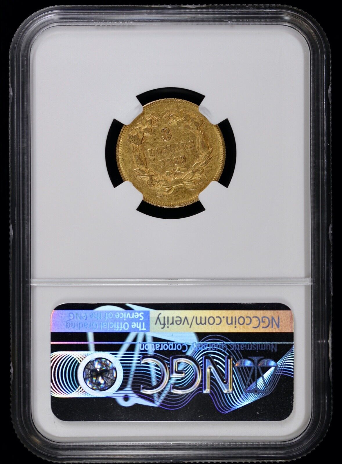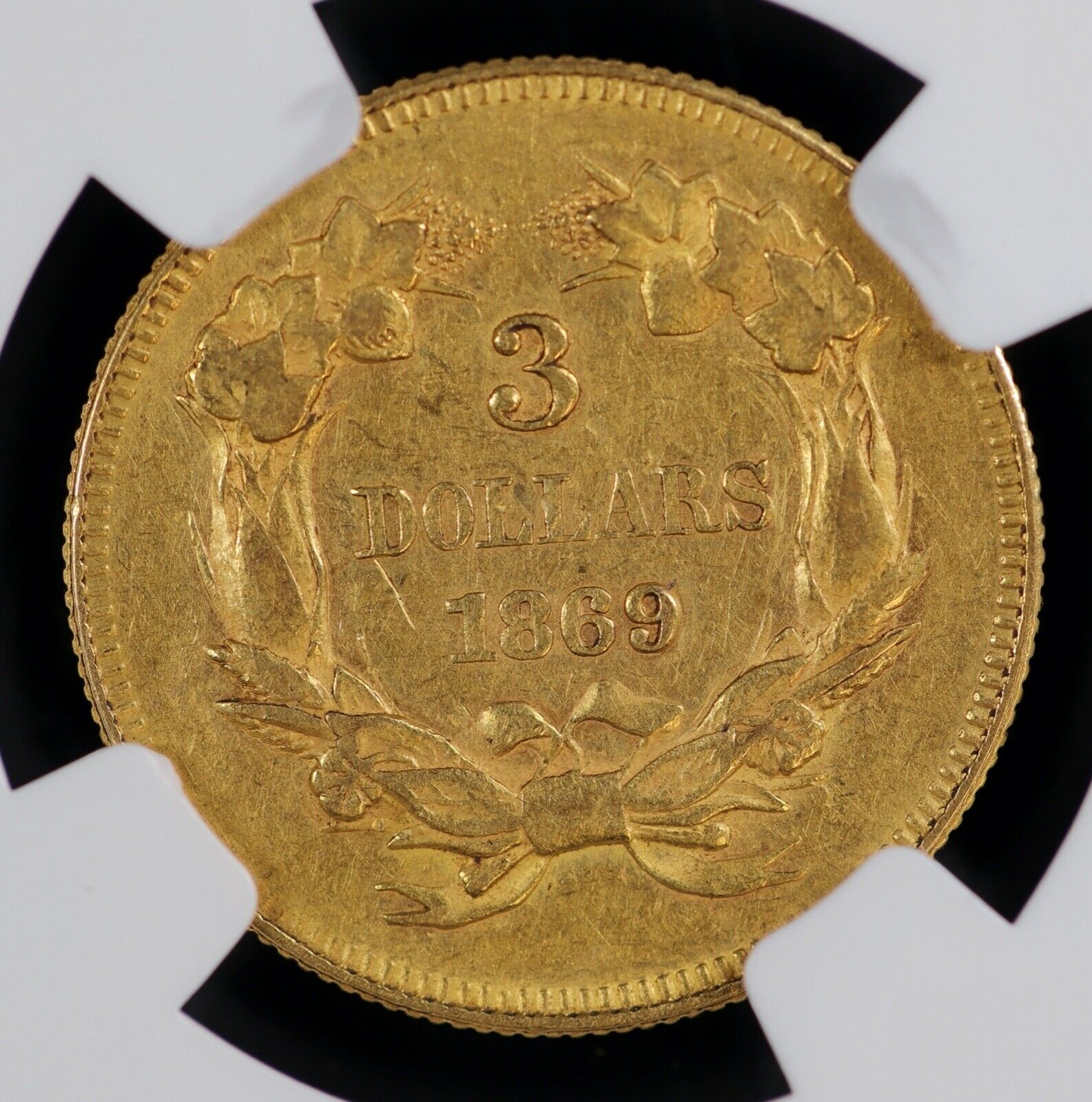 1869 $3 Gold Indian Princess Three Dollar NGC AU