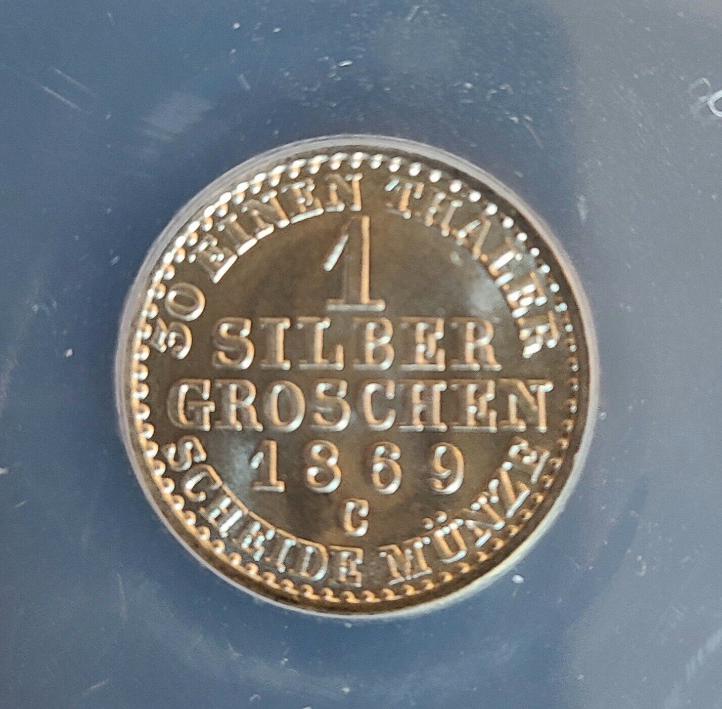1869-C German Prussia 1 Silber Groschen ANACS MS 66 Wilhelm I Silver Coin KM#485
