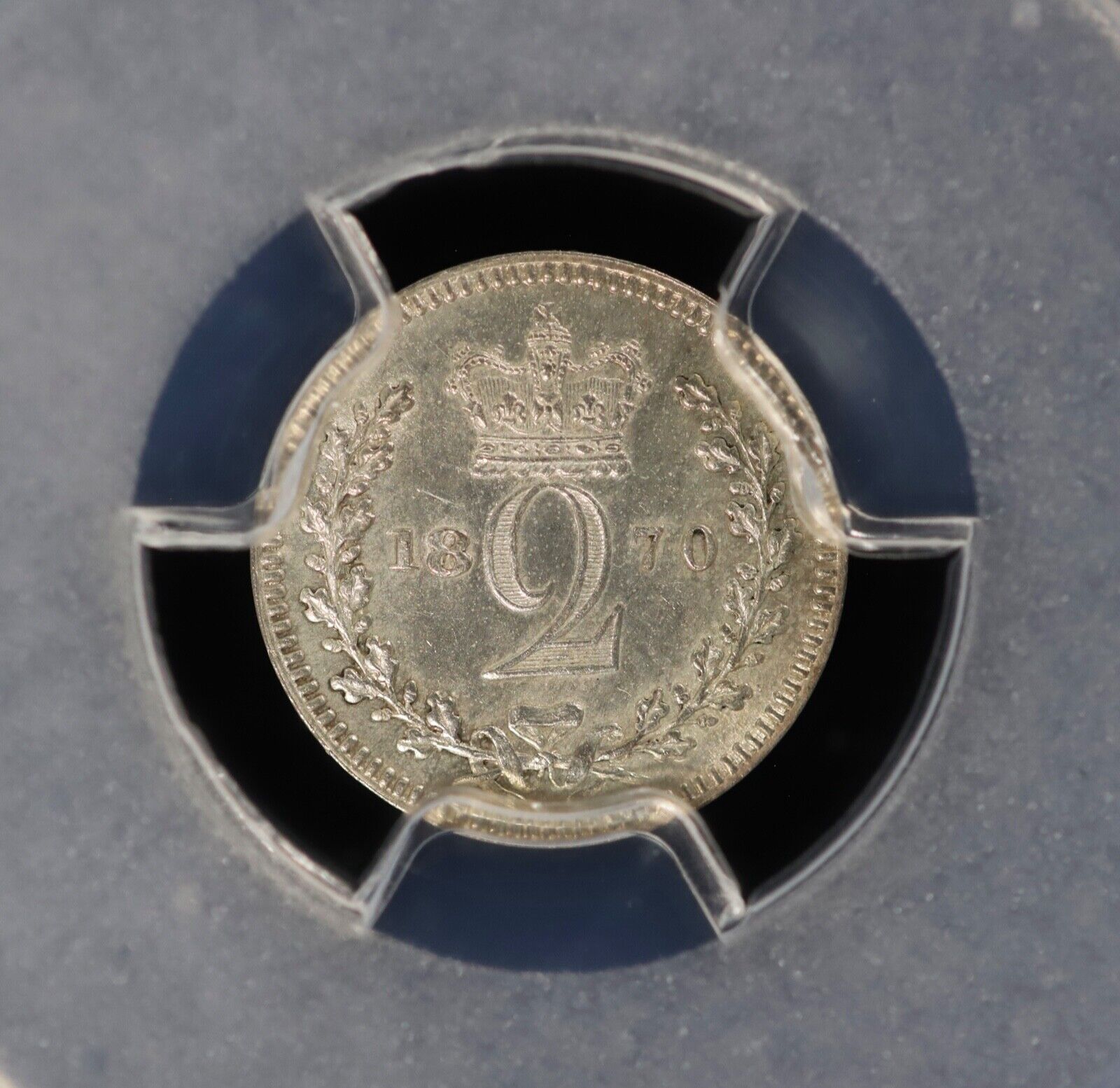 1870 Victoria England Great Britain Silver Maundy 2 Pence 2D PCGS PL UNC Detail