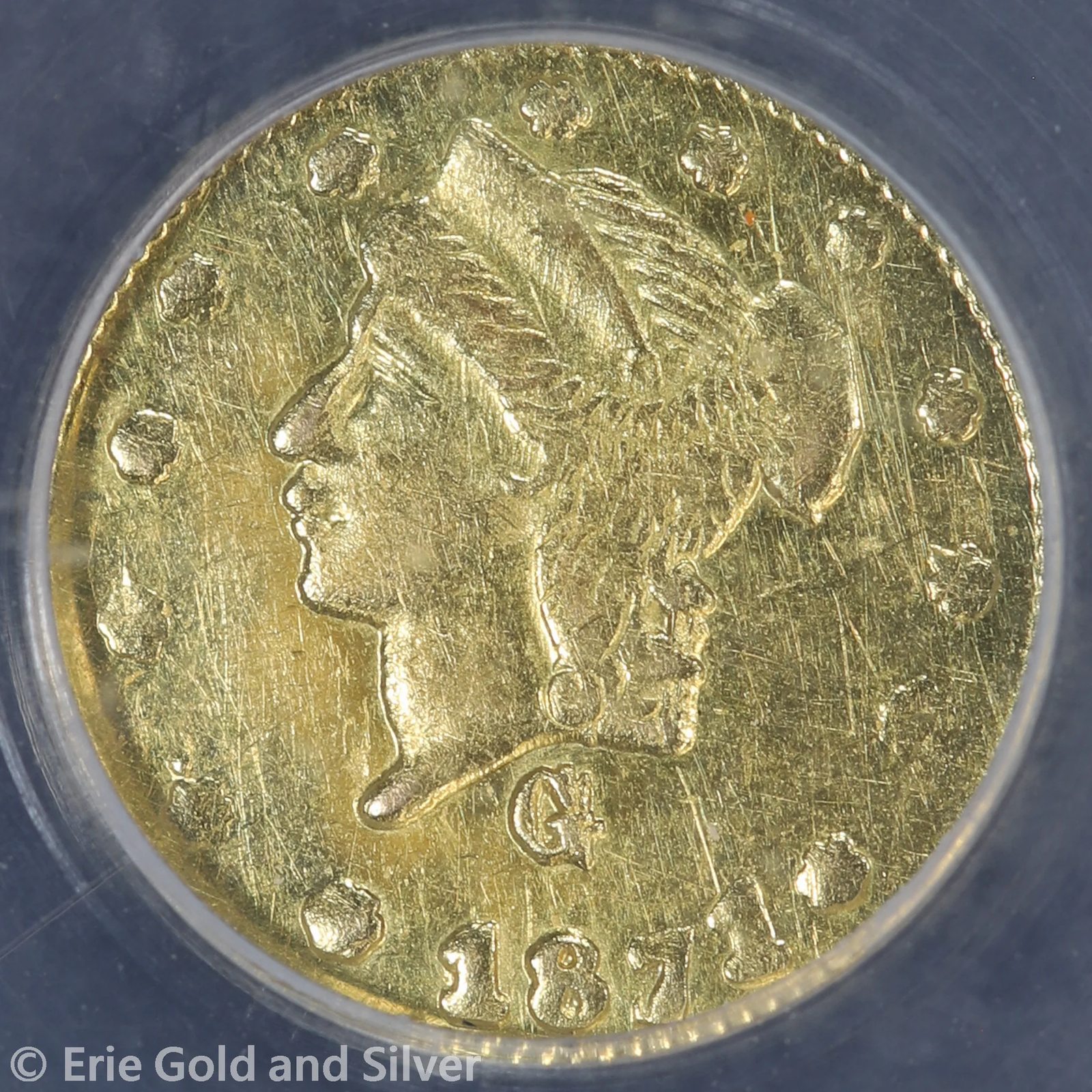 1871 25C California Fractional Gold Round Liberty Quarter Dollar NGC AU 55 | BG-