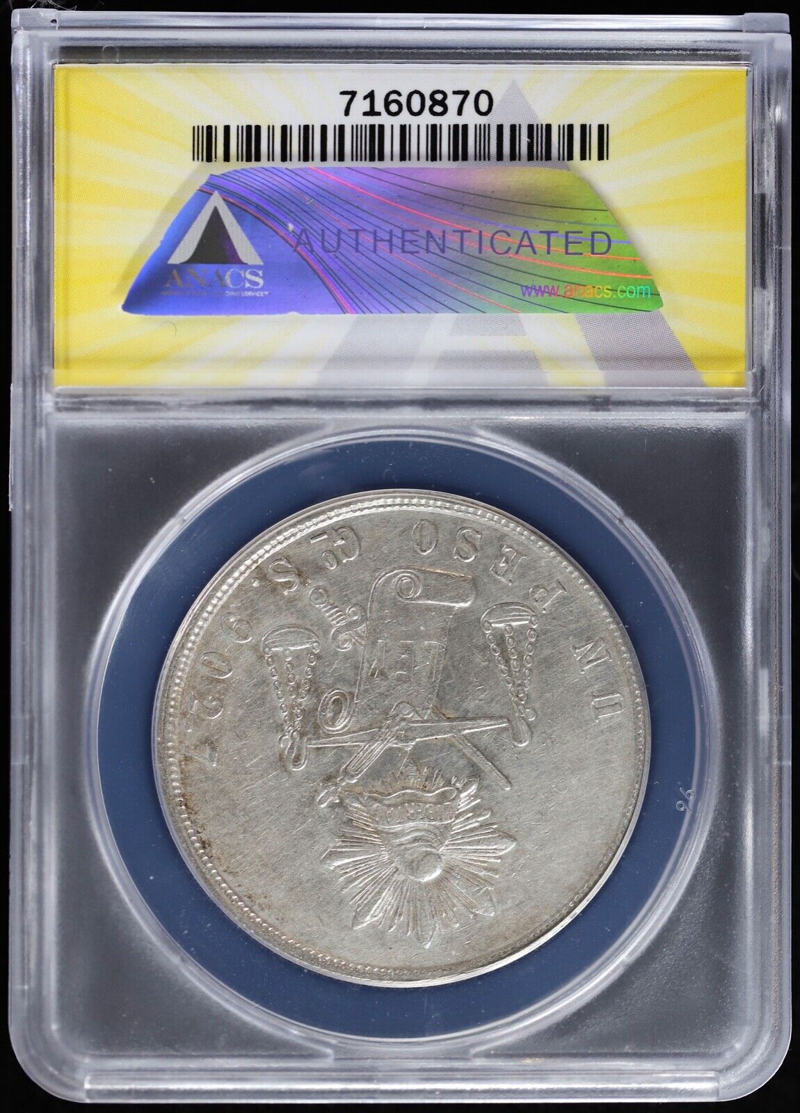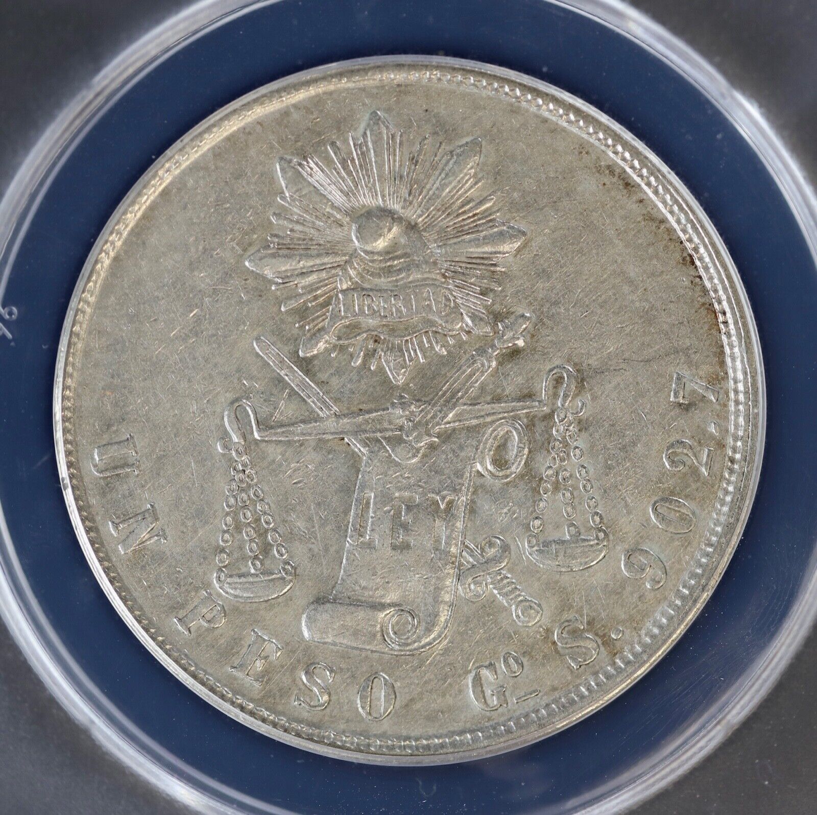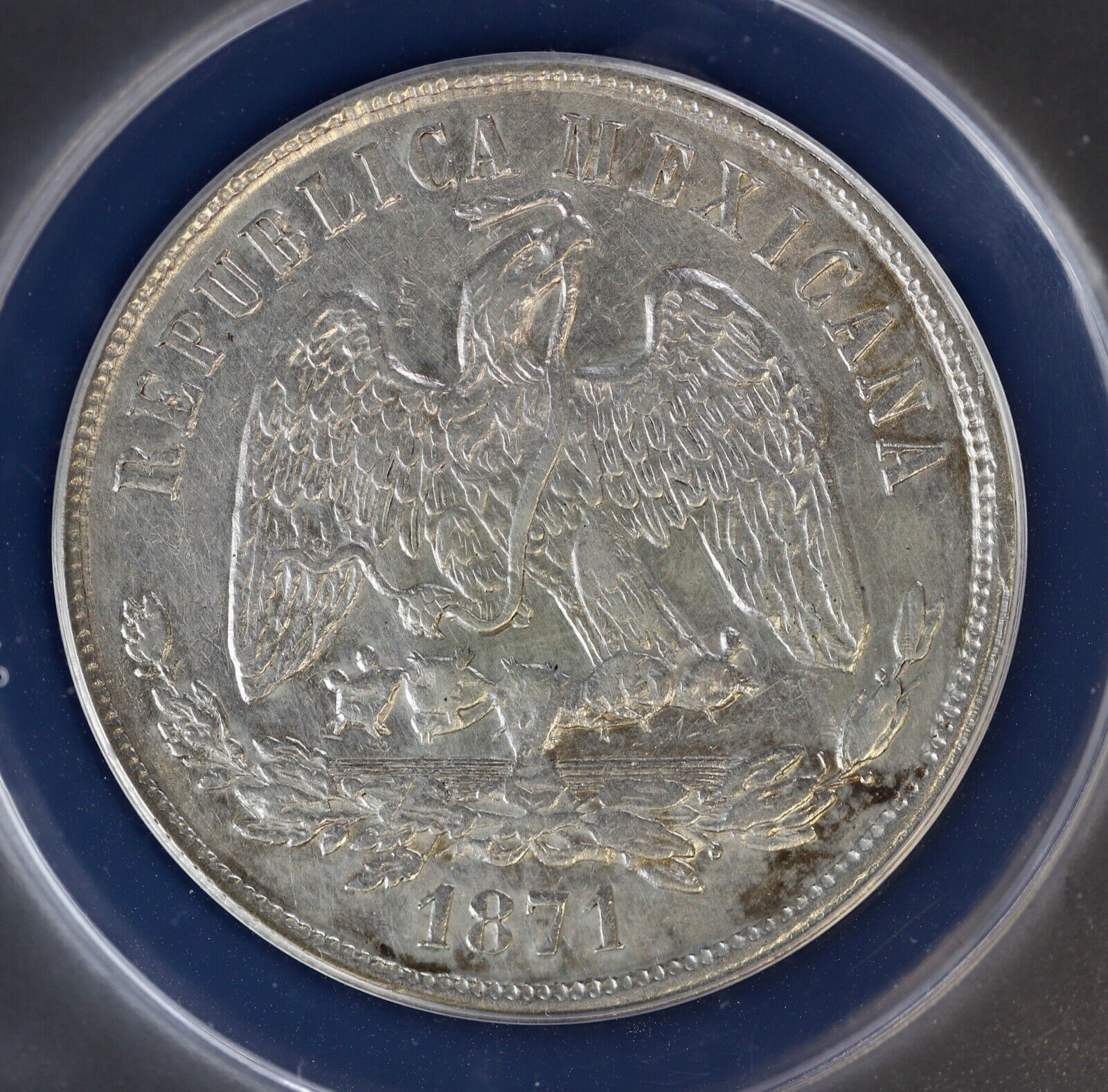 1871-Go, S Mexico Silver Peso ANACS AU 55 Details (Cleaned) | Cap & Ray