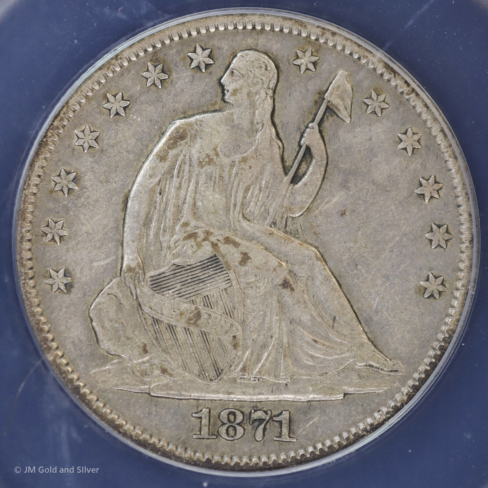 1871 S 50c Seated Liberty Half 1/2 Dollar ANACS VF 35 Details