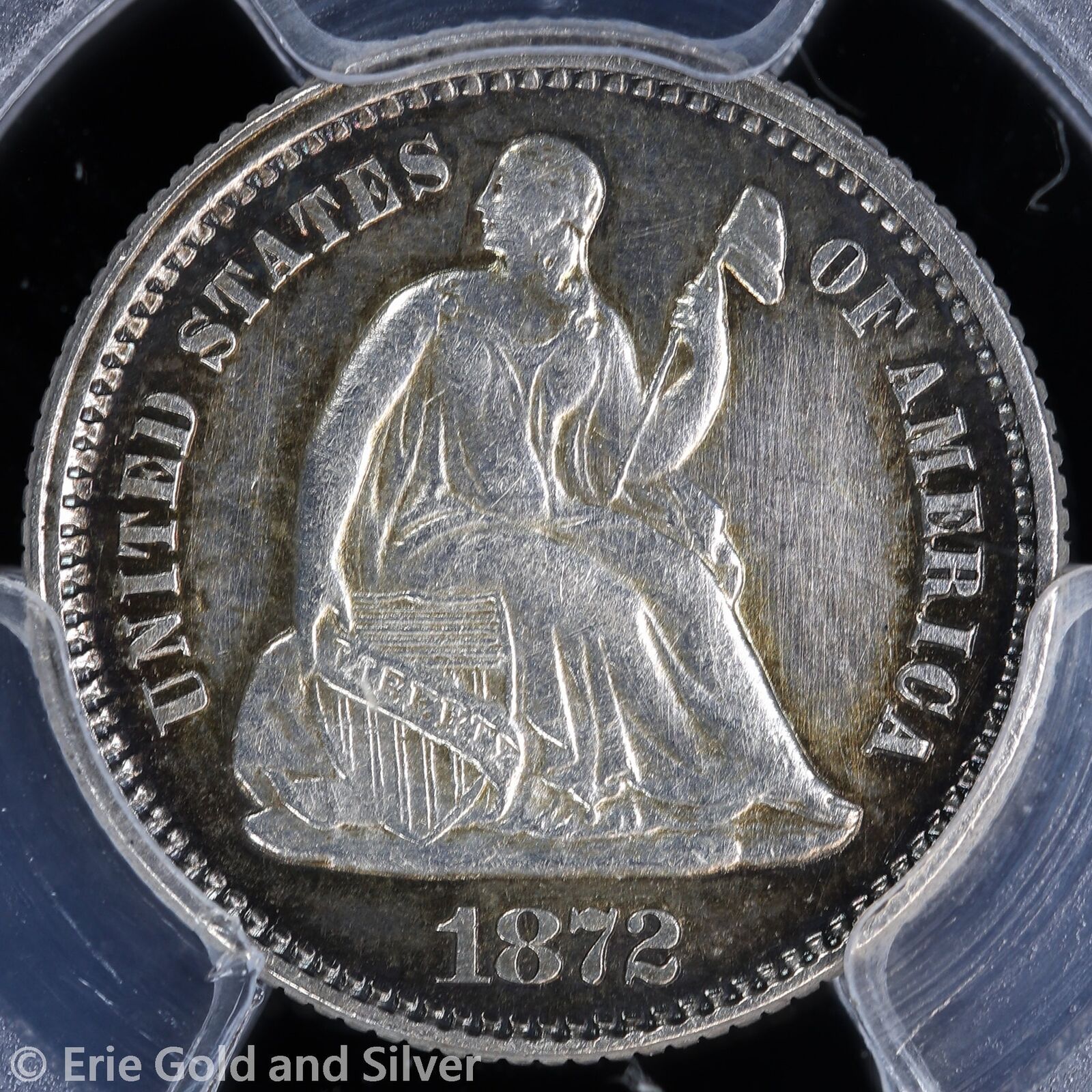 1872 H10C Seated Liberty Half Dime PCGS Genuine AU Detail