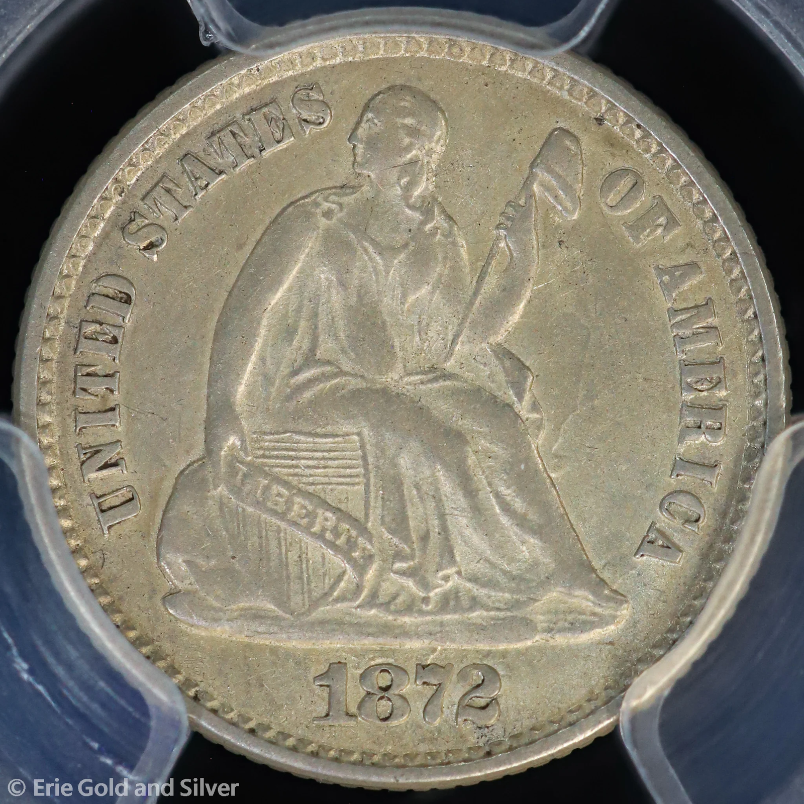 1872 H10c Seated Liberty Half Dime PCGS Genuine AU Detail