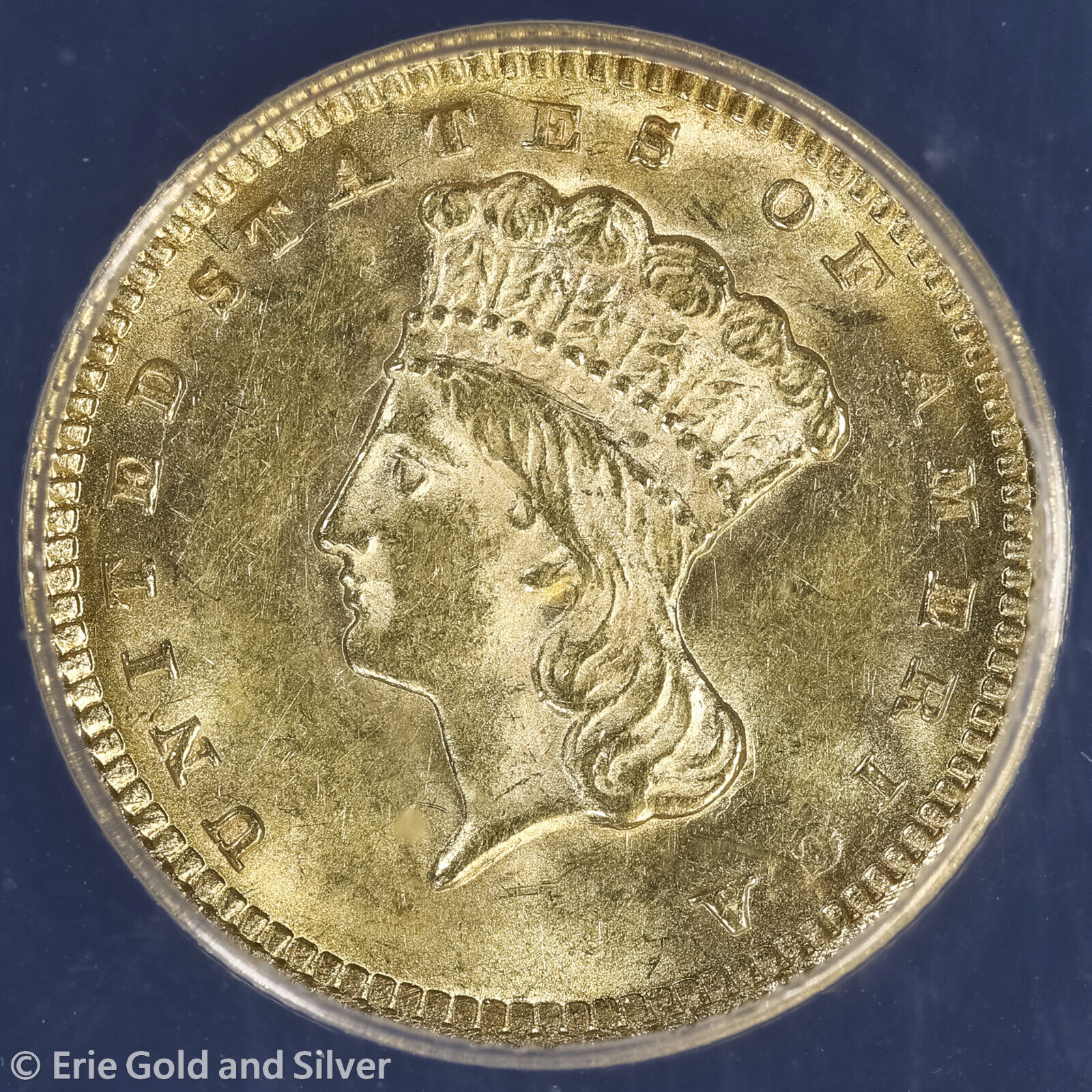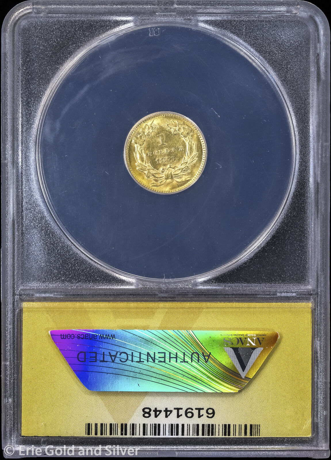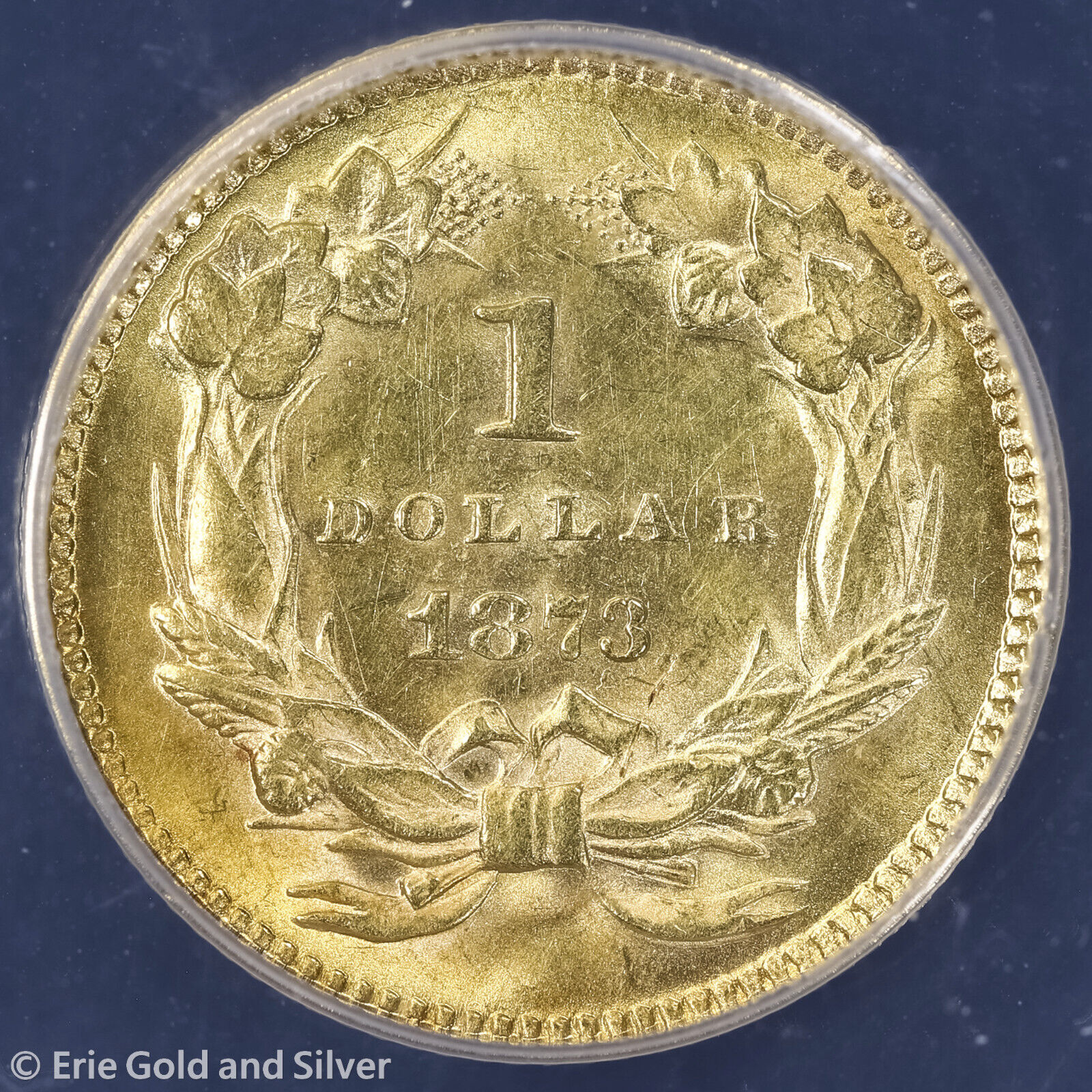 1873 $1 Indian Princess Head Gold Dollar ANACS MS 62 | Open 3 Uncirculated UNC