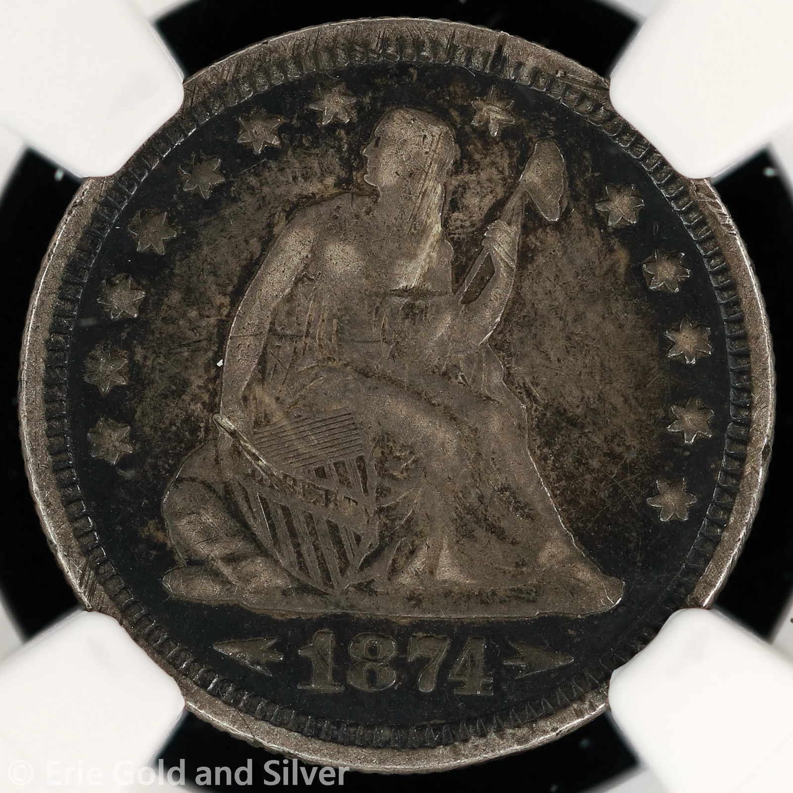 1874 25C Seated Liberty Quarter NGC XF Details | Arrows