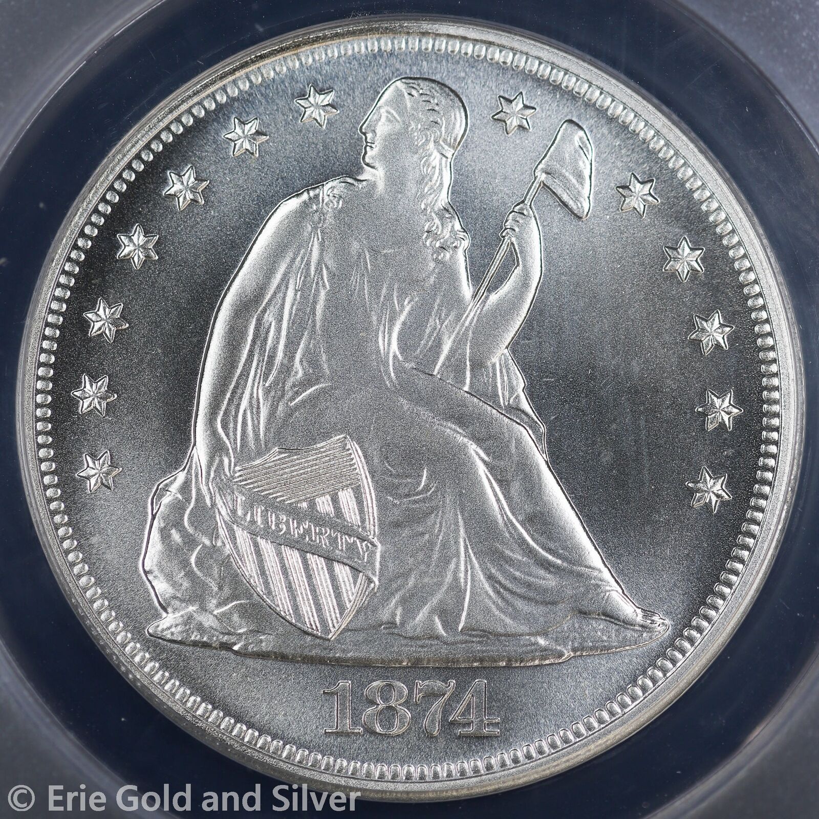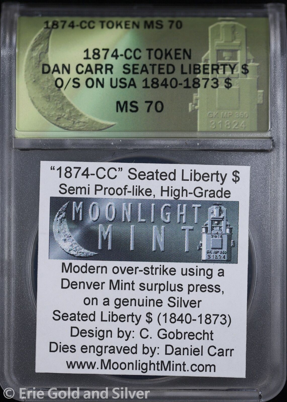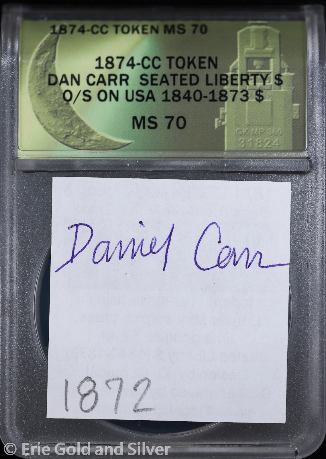 1874-CC Dan Carr Seated Liberty Dollar Token ANACS MS 70 | O/S on USA