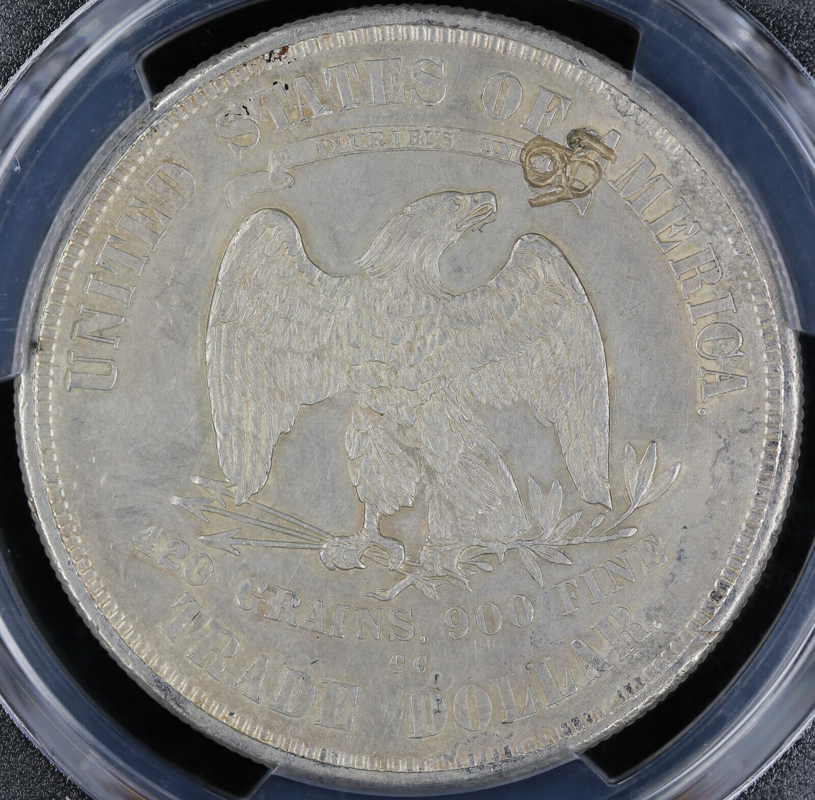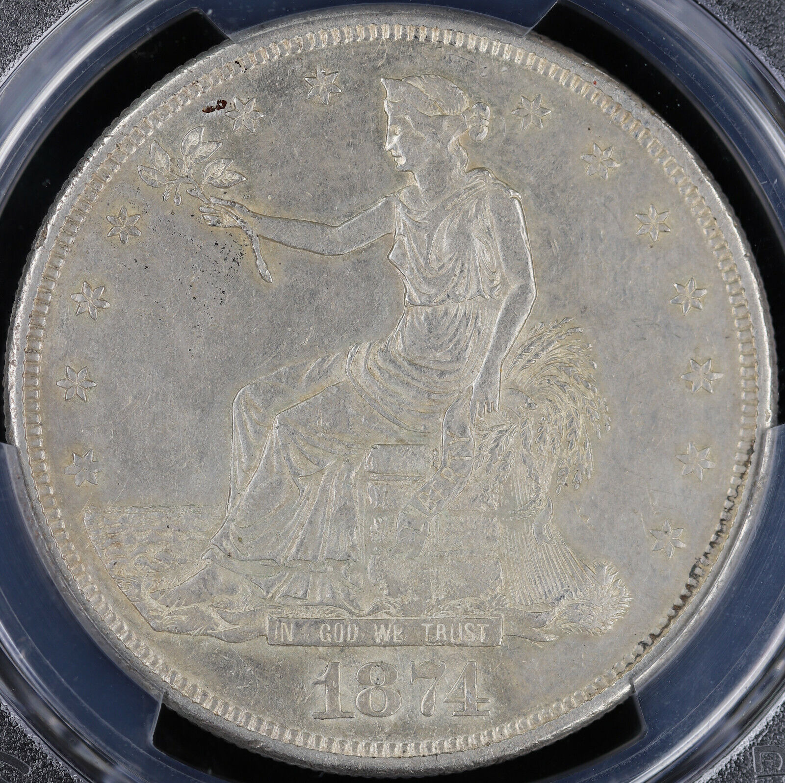 1874-CC T$1 Silver Trade Dollar PCGS AU Detail (Scratch) | Error: Chop Mark