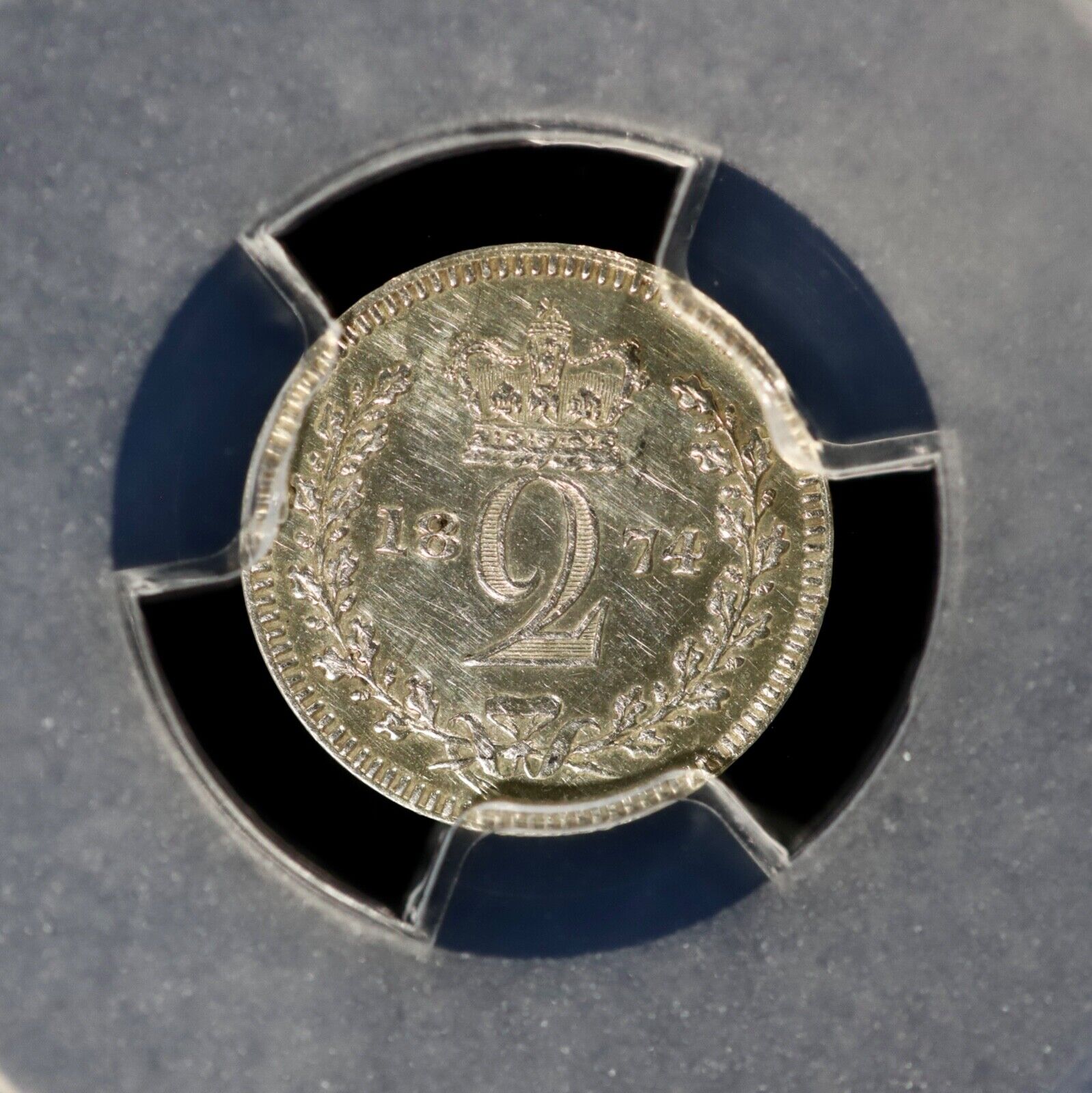 1874 Victoria England Great Britain Silver Maundy 2 Pence 2D PCGS PL UNC Detail