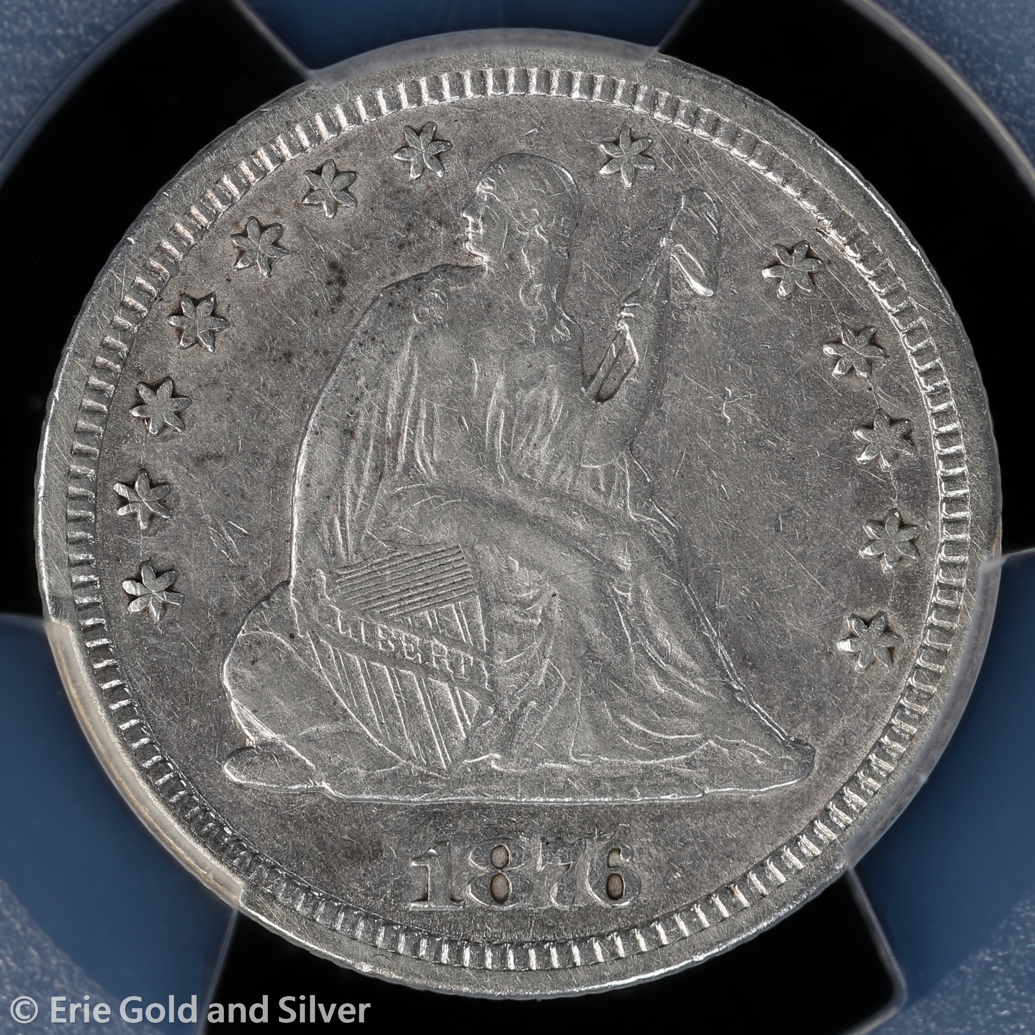 For sale is a 1876-CC Seated Liberty Quarter. Certified / graded by PCGS at Genuine XF Detail.