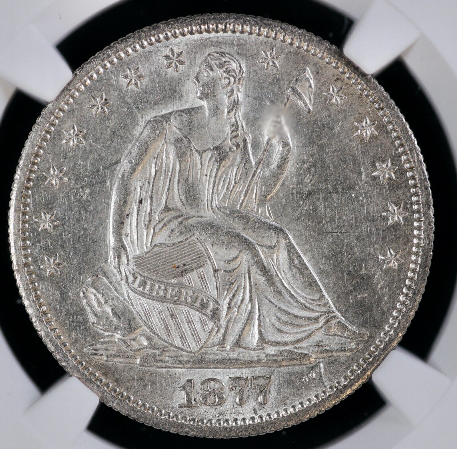 1877 S 50c Seated Liberty Silver Half 1/2 Dollar NGC UNC Details Uncirculated